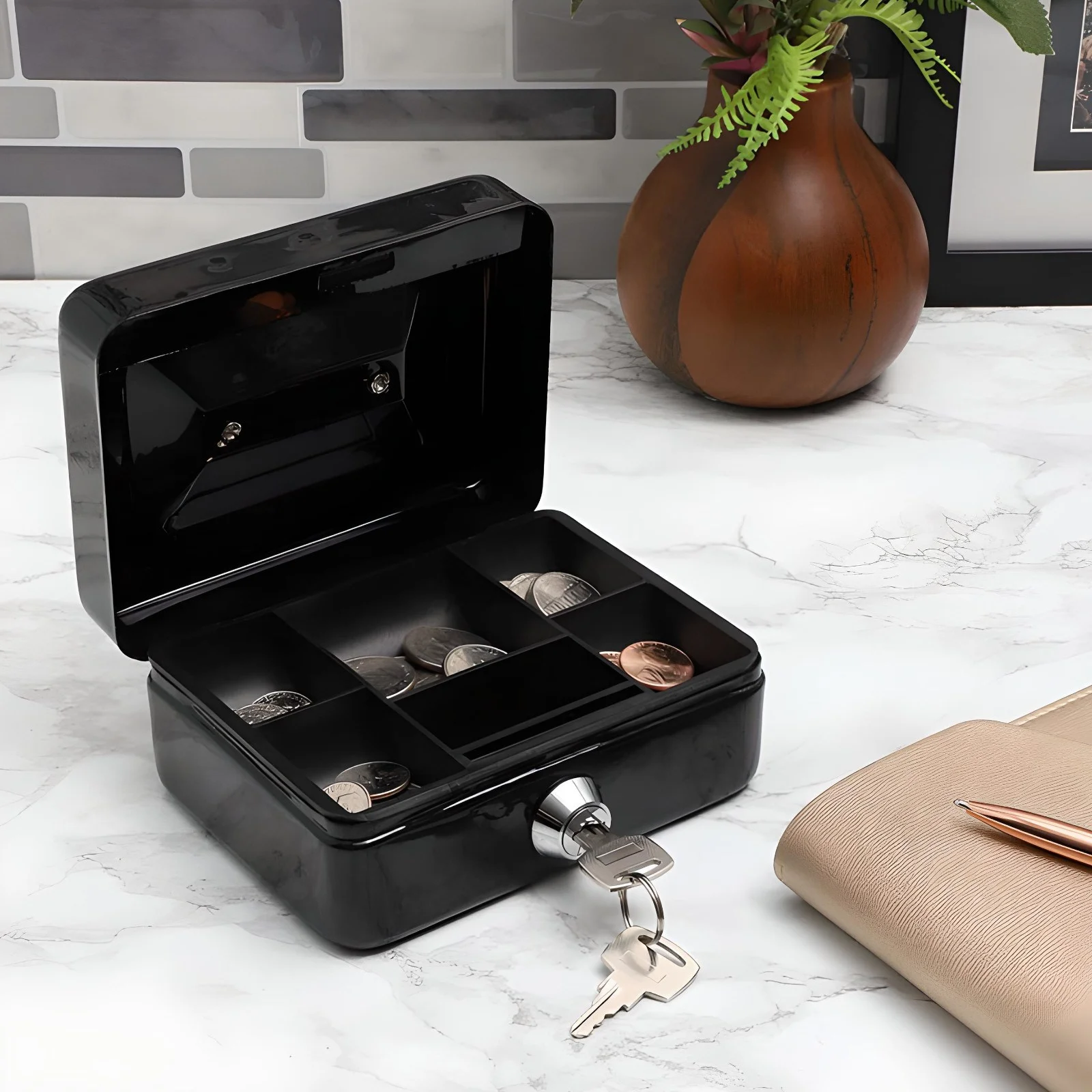 Kasetka na pieniądze bilon metalowa zamykana na klucz to eleganckie i trwałe rozwiązanie, które sprawdzi się doskonale w każdym domu oraz biurze. Dzięki wymiarom 15 x 12 x 8 cm, kasetka jest kompaktowa, a jednocześnie pojemna, co pozwala na wygodne przechowywanie gotówki, dokumentów oraz kosztowności.