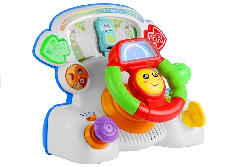 Wszystkie maluszki uwielbiają zabawki, które są bardzo kolorowe i składają się z wielu elementów o różnych kształtach. Zabawa jest jeszcze lepsza, kiedy dotknięcie wybranego elementu skutkuje załączeniem kolorowych światełek, a nawet wesołych dźwięków. Wszystkie te wymagania spełnia prezentowana kierownica umieszczona na desce rozdzielczej. Dziecięce wzornictwo nawiązujące do wyglądu realistycznej kierownicy zwieńczone jest różnokolorowymi dodatkami, co z pewnością zaabsorbuje i przyciągnie uwagę każdego malucha.