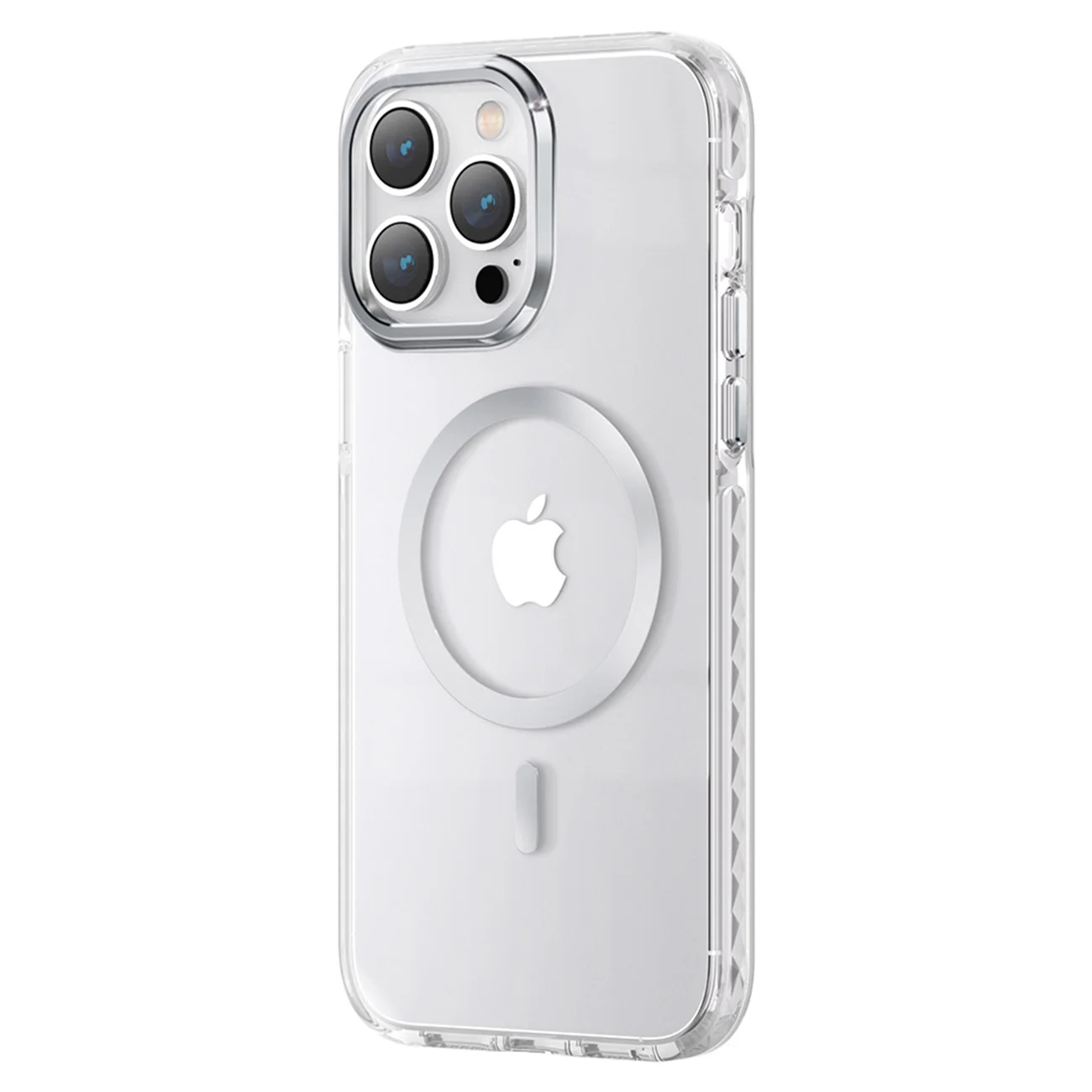Magnetyczne etui iPhone 14 Plus MagSafe PQY Ice Crystal Series srebrne