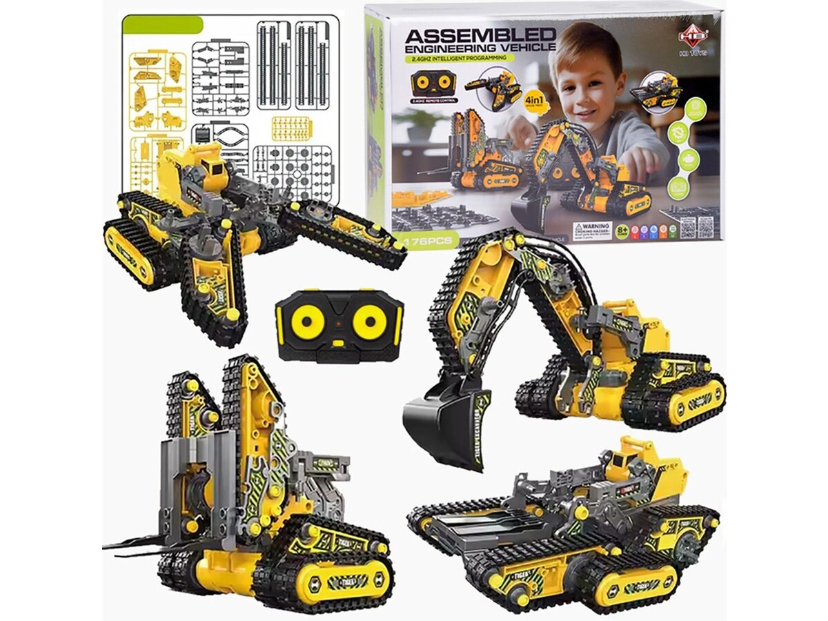 Zestaw maszyn budowlanych do skręcania to idealna zabawka dla małych majsterkowiczów. Zestaw ten rozwija kreatywność, logiczne myślenie i zdolności manualne. W skład zestawu wchodzi mnóstwo części a gotowy pojazd jest zdalnie sterowany.