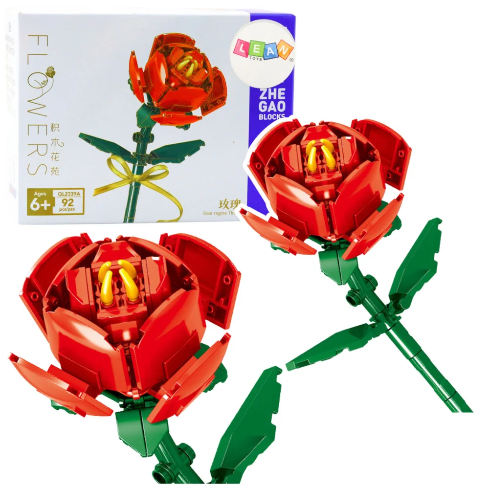 Klocki Konstrukcyjne Róża Z Kokardą Czerwona 92 el.