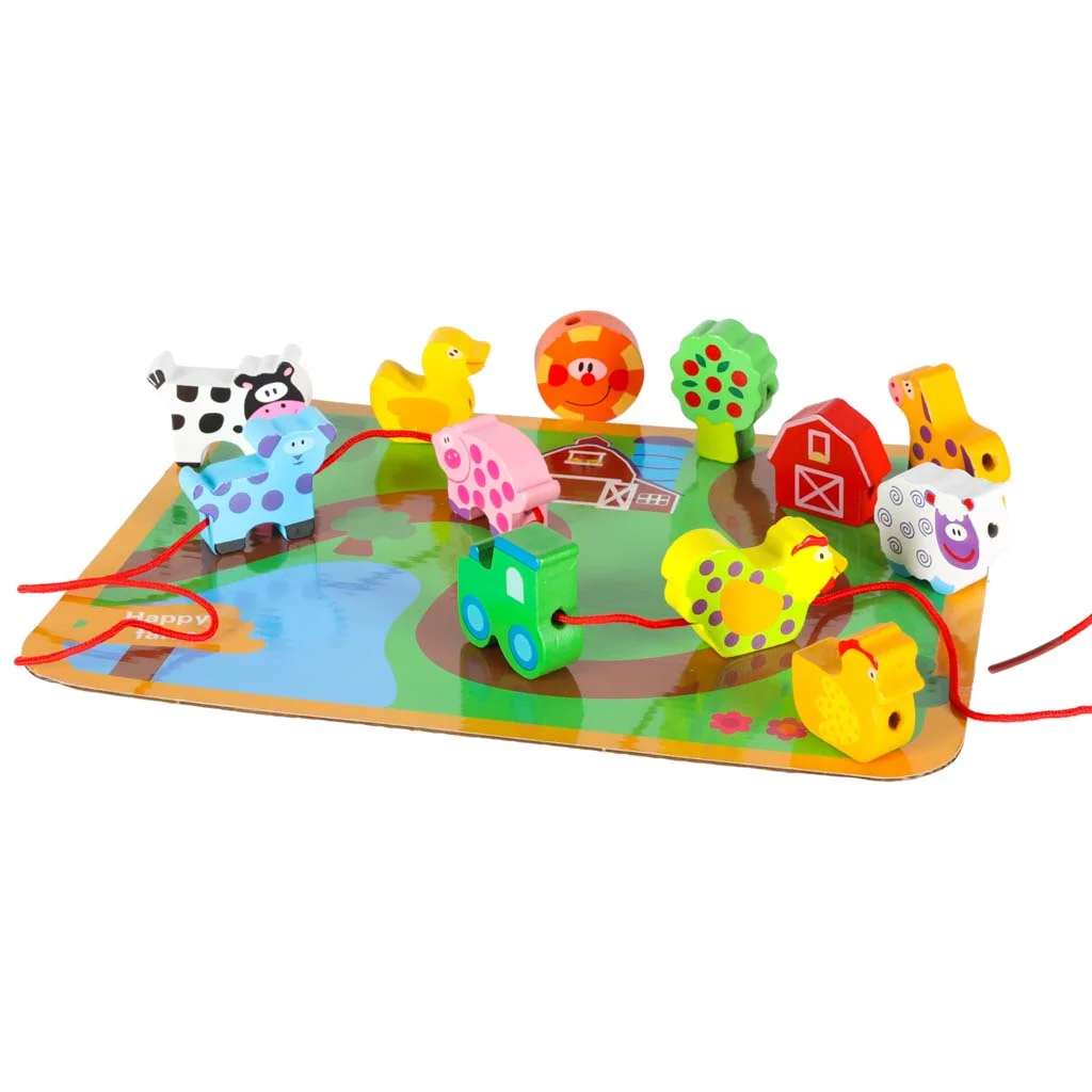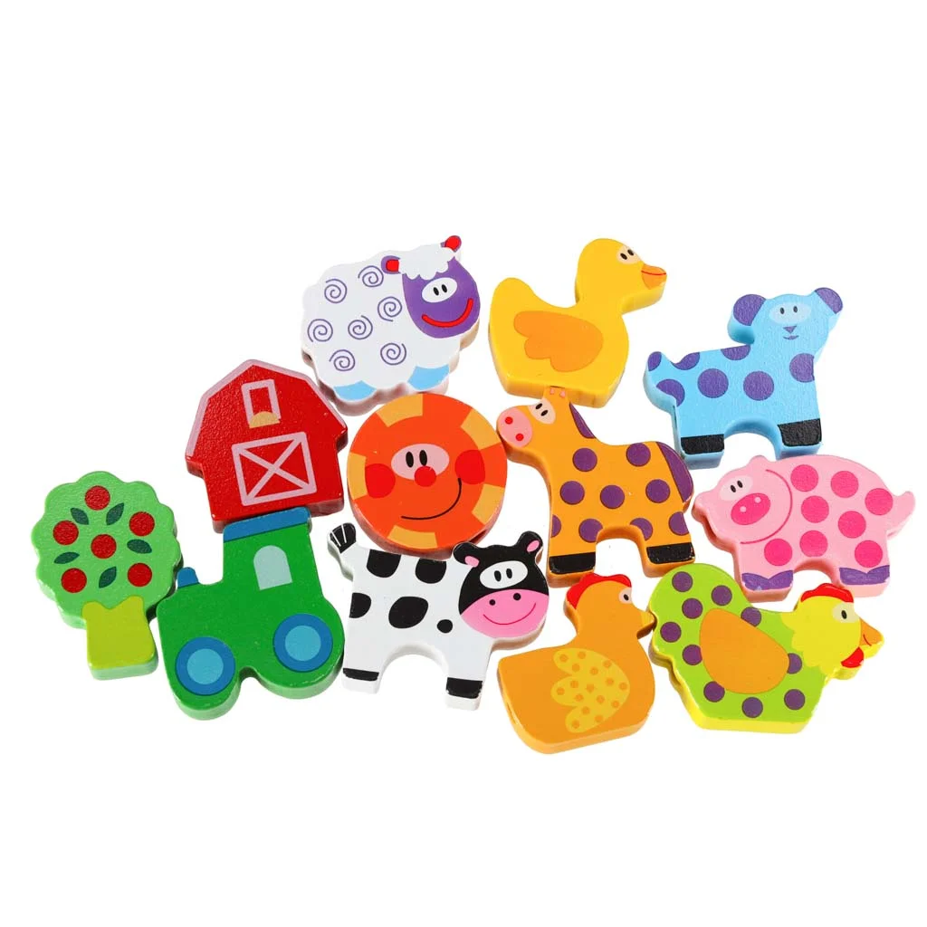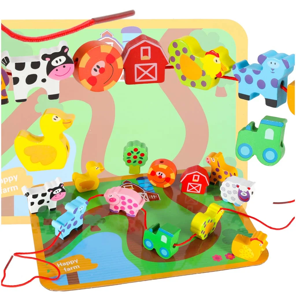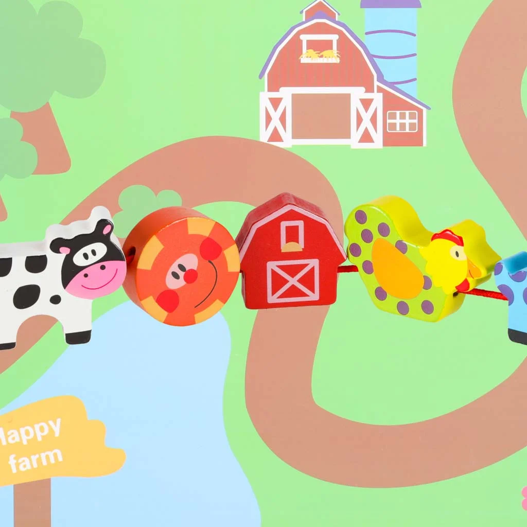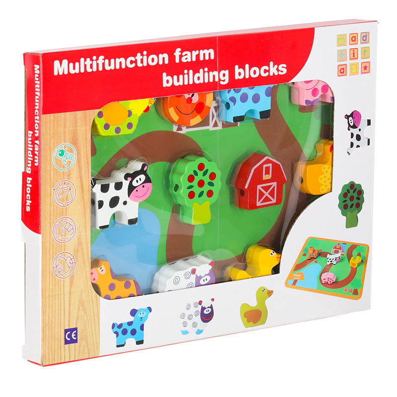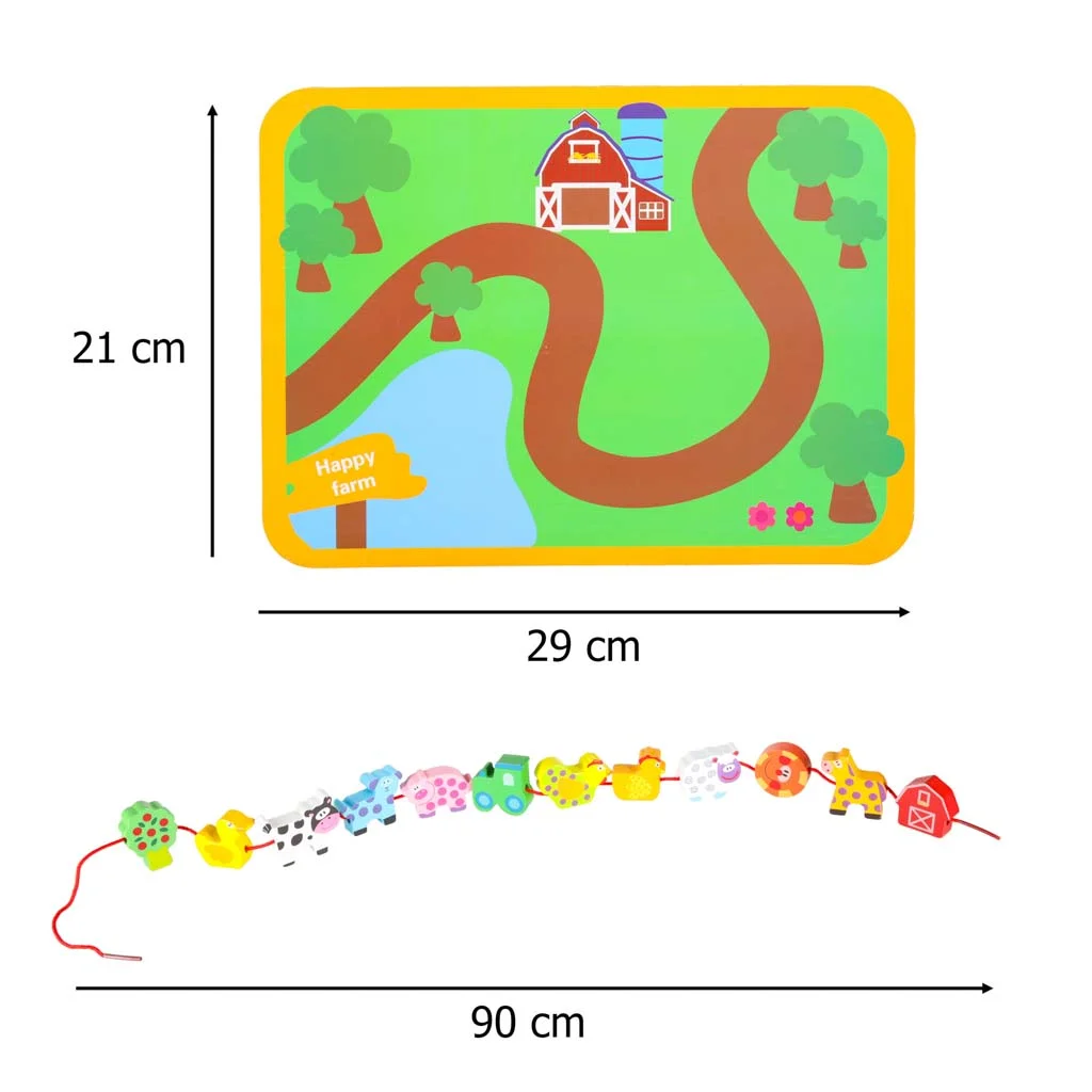 DREWNIANE KLOCKI DO NAWLEKANIA - ZABAWKA EDUKACYJNA + PLANSZA