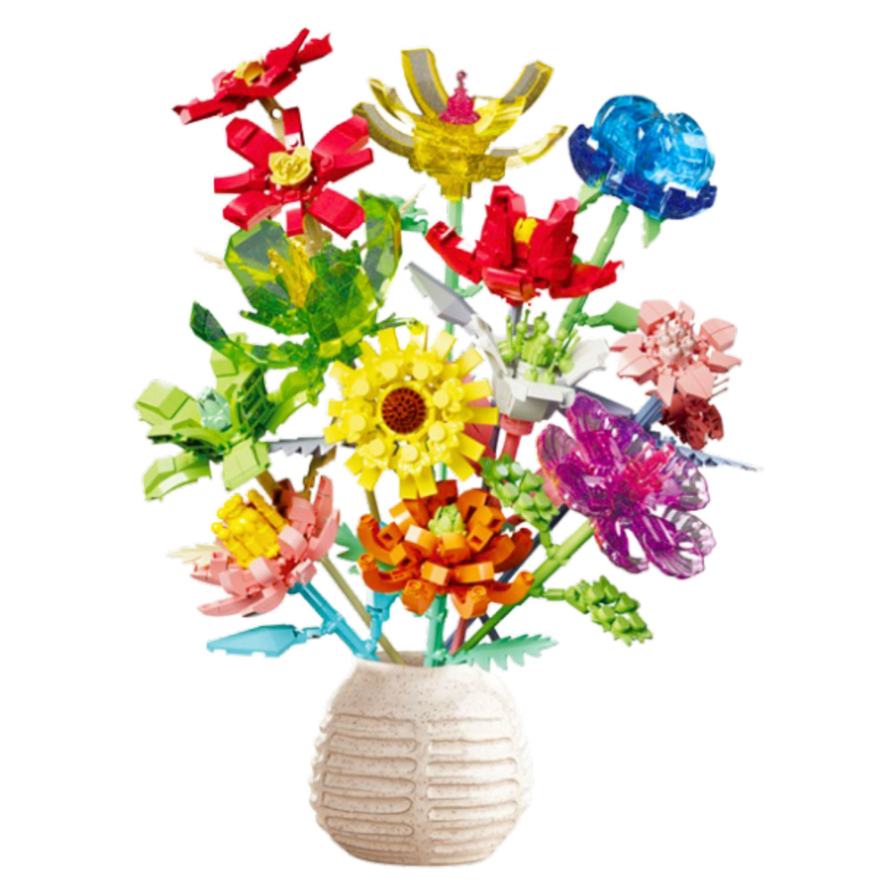 Klocki Konstrukcyjne Bukiet Kwiatów to imponujący zestaw składający się z aż 1001 elementów, który pozwala stworzyć wyjątkową, kolorową kompozycję roślinną. Gotowy bukiet składa się z wielu różnorodnych kwiatów o realistycznym wyglądzie – każdy detal został starannie zaprojektowany, aby odwzorować naturalne kształty płatków, liści i łodyg.