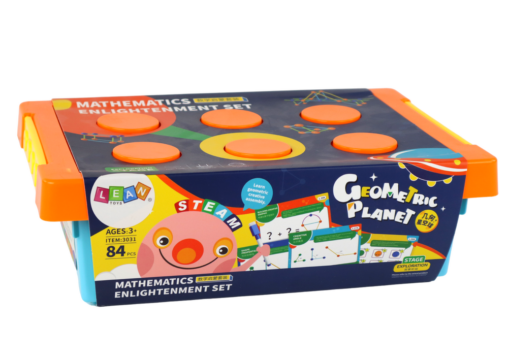 Klocki konstrukcyjne Geometric Planet to zestaw, który zapewni Twojemu dziecku niezapomnianą zabawę i rozwój. Zestaw zawiera 30 kulek konstrukcyjnych w trzech kolorach ( zielony, pomarańczowy, niebieski ) oraz 54 patyczki do łączenia kulek w czterech różnych rozmiarach i w czterech kolorach ( fioletowy, zielony, niebieski, żółty) . Wraz z zestawem otrzymasz także naklejki za pomyślnie ukończone zadania, 16 tablic z różnymi zadaniami oraz zmywalny pisak do tablicy.