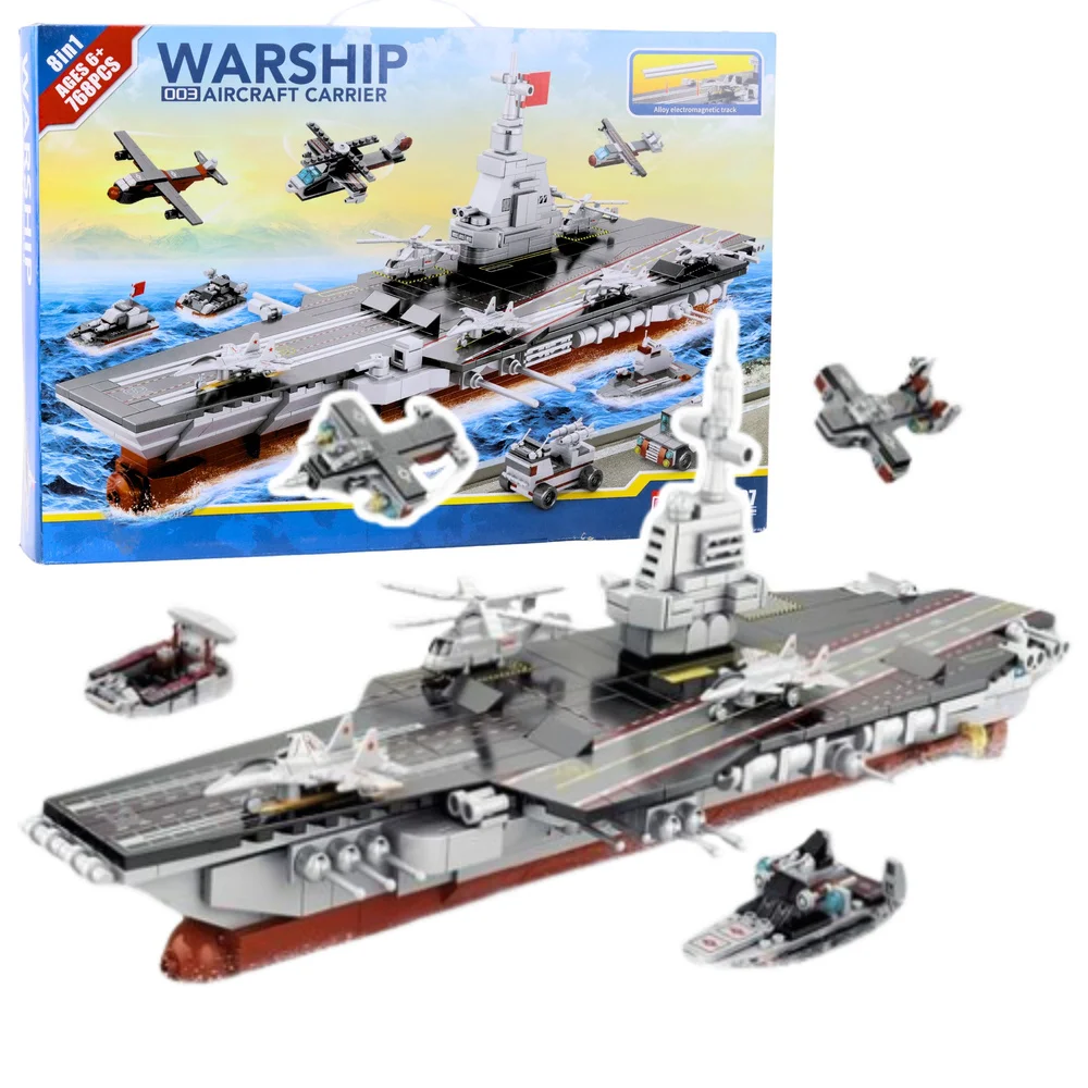Ten imponujący zestaw klocków konstrukcyjnych pozwala zbudować realistyczny model lotniskowca wraz z towarzyszącymi mu pojazdami powietrznymi i morskimi. Składający się z aż 768 elementów, zestaw oferuje długie godziny twórczej zabawy i satysfakcji z ukończonego projektu. Model po złożeniu mierzy 41 cm długości, co czyni go nie tylko wspaniałą zabawką, ale także efektowną dekoracją dla każdego fana marynistyki i militariów.