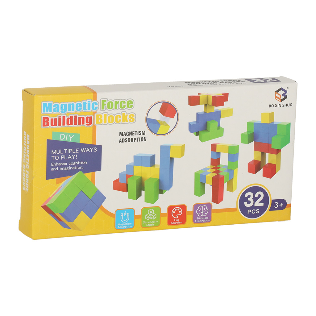 Klocki łączą się za pomocą silnych magnesów, co umożliwia budowanie stabilnych i imponujących struktur. Każdy klocek ma kształt kwadratu, co pozwala na tworzenie zarówno prostych, jak i bardziej złożonych budowli. Intensywne kolory: zielony, żółty, czerwony i niebieski przyciągają uwagę, zachęcając do tworzenia różnorodnych projektów.