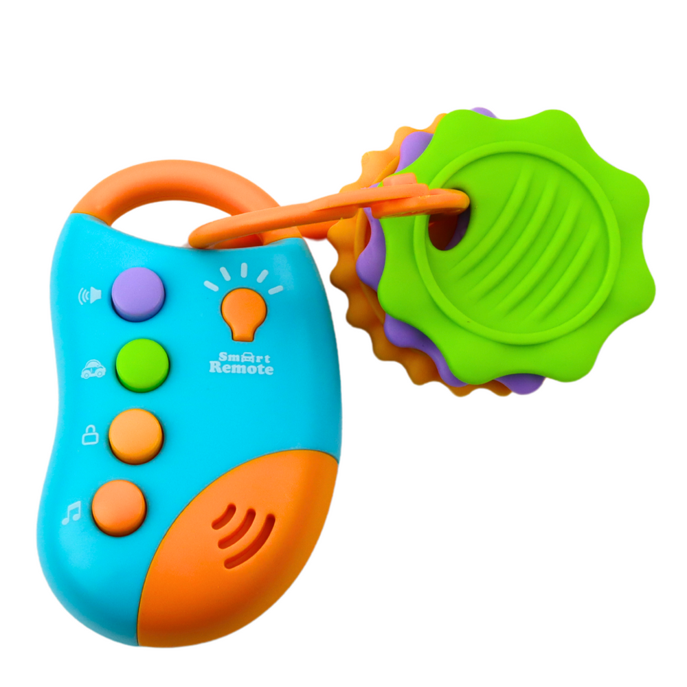 Interaktywny pilot z kluczami to doskonała zabawka edukacyjna dla najmłodszych dzieci, która łączy funkcję zabawy i wspomagania rozwoju sensorycznego. Produkt został zaprojektowany z myślą o maluchach od 18. miesiąca życia i oferuje liczne atrakcje, które przyciągają uwagę dziecka i pobudzają jego ciekawość.