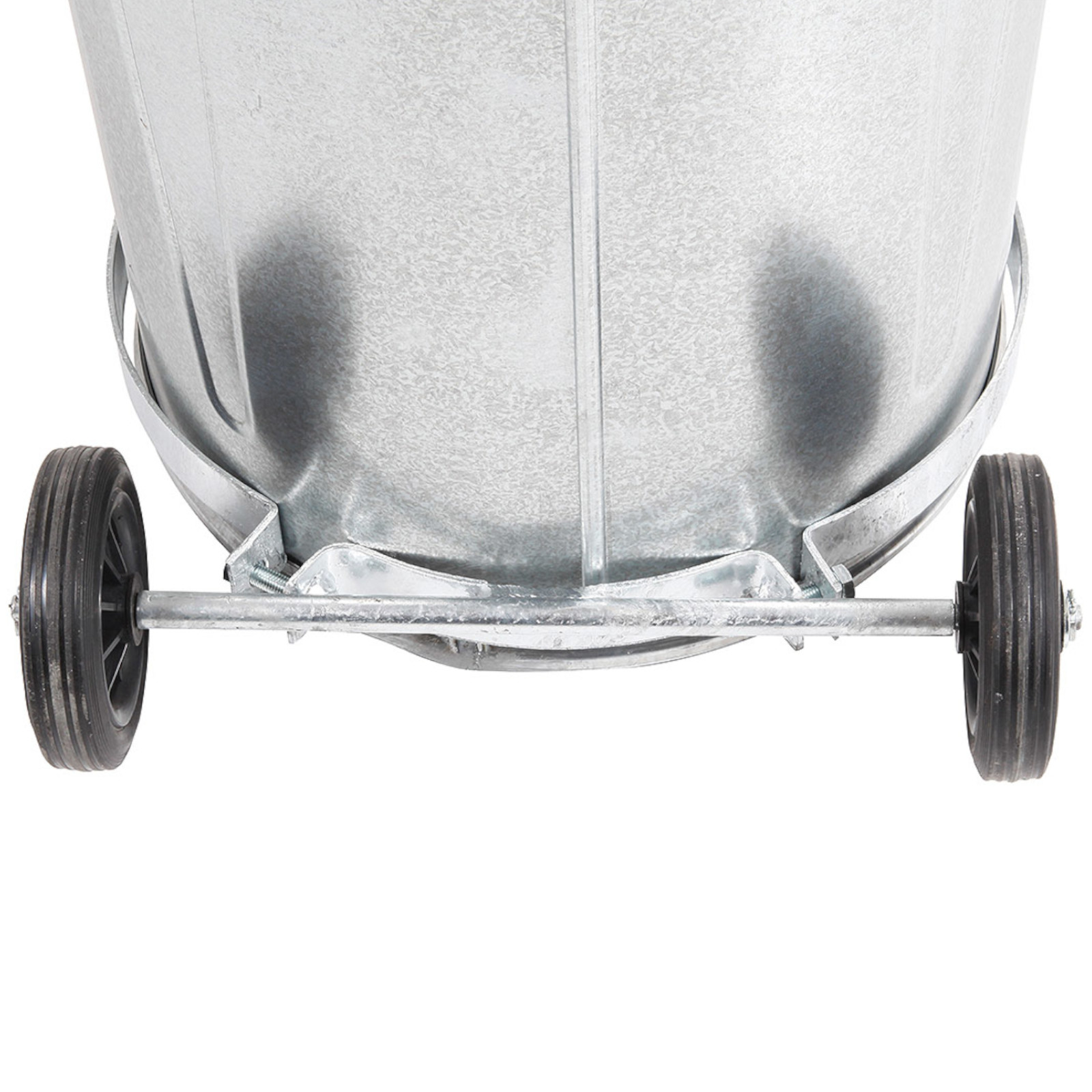 Wysokiej jakości koła do pojemnika na odpady oraz popiół o pojemności 110l, które znacznie ułatwiają jego przemieszczanie. Dzięki solidnej konstrukcji z grubej blachy stalowej, te koła są odporne na działanie zewnętrznych czynników atmosferycznych, co zapewnia ich długotrwałe użytkowanie.
