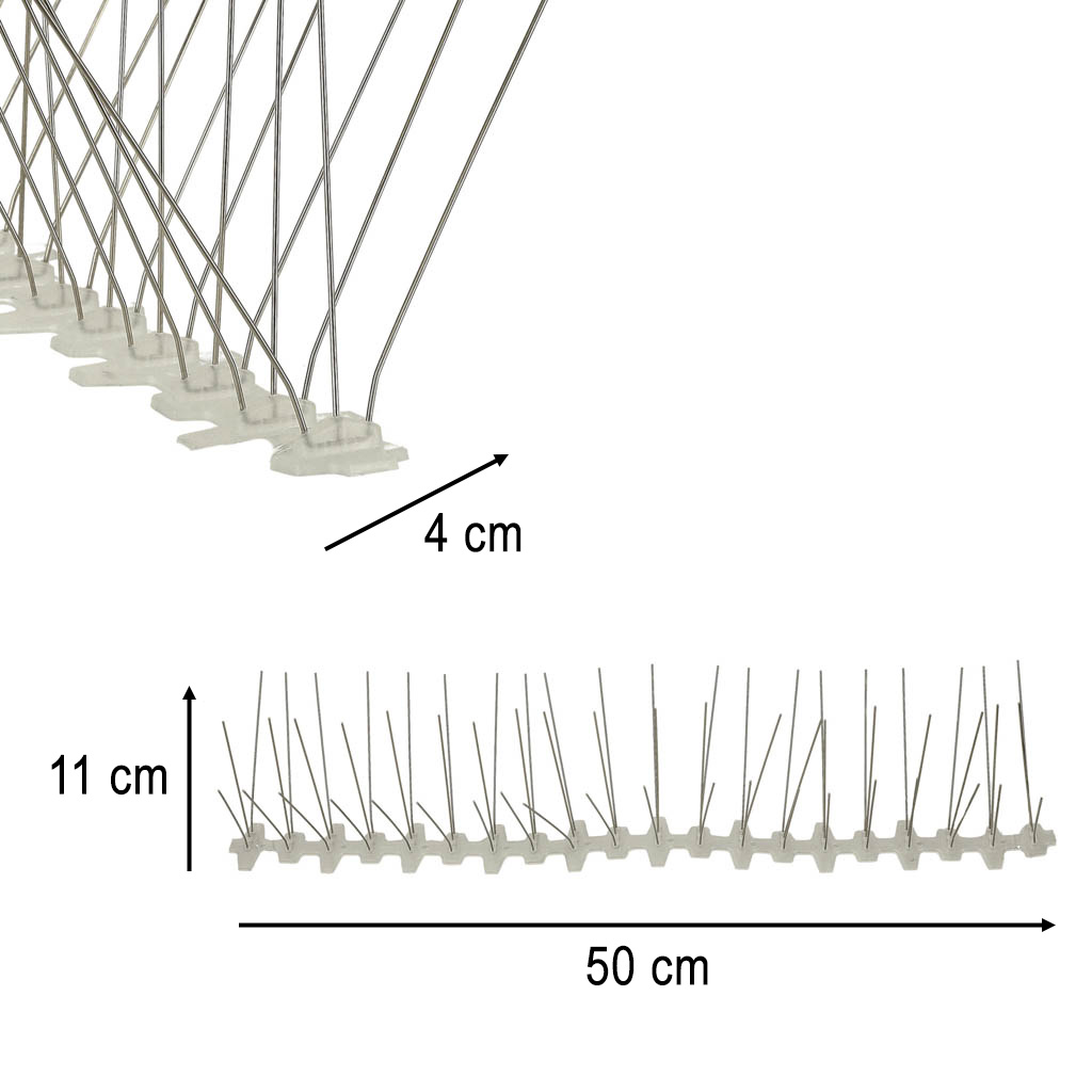 Kolce są niezbędne zwłaszcza w miastach. Ekologicznie rozwiązują problem przesiadywania ptaków na elewacjach budynków. Szeroki rozstaw kolców chroni duże powierzchnie, a podstawa o długości 50 cm idealnie nadaje się do montażu na parapetach. Możesz również łatwo dostosować długość podstawy do swoich potrzeb.