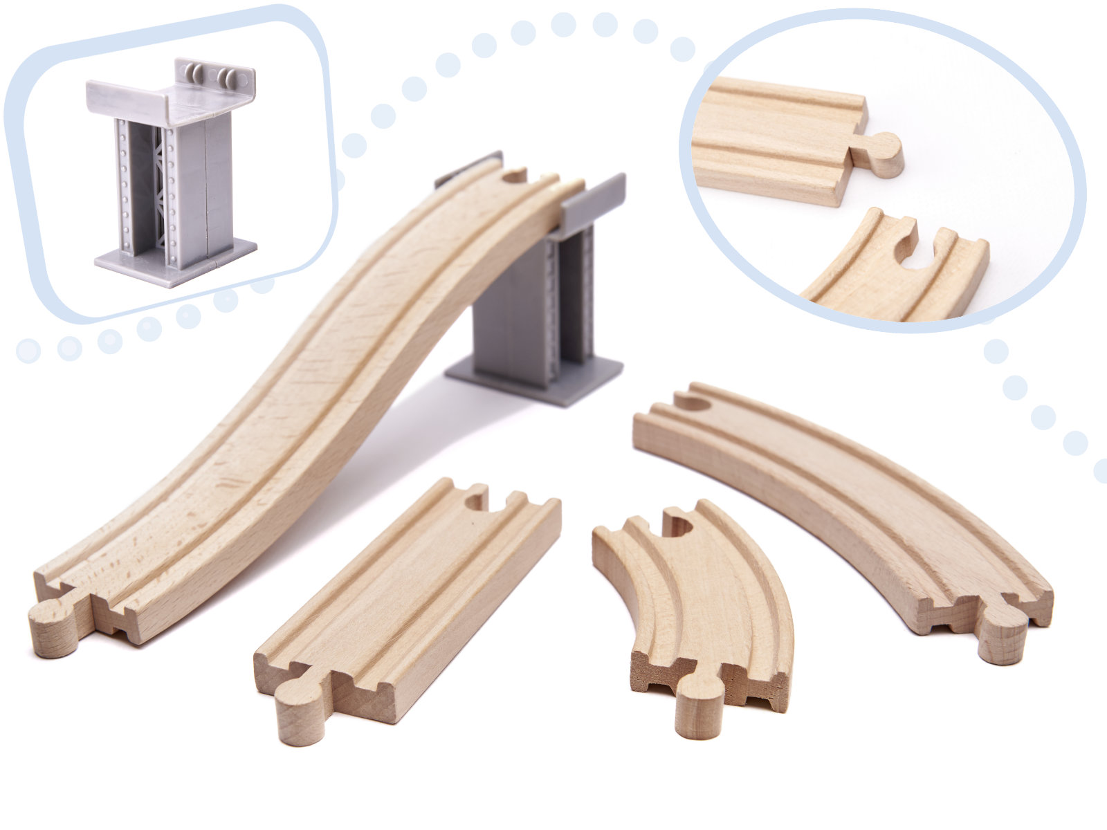 Możliwości budowania są praktycznie nieograniczone. Dzieci mogą tworzyć mosty, filary, szlabany i inne elementy zabudowy, co rozwija ich kreatywność. Elementy są starannie oszlifowane i mają zaokrąglone brzegi, co zapewnia bezpieczeństwo podczas zabawy.