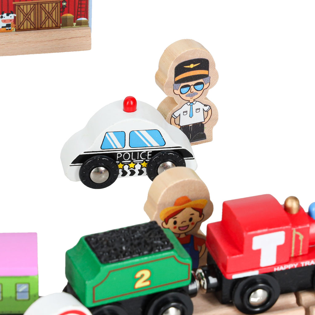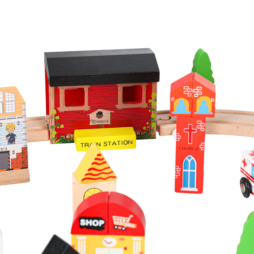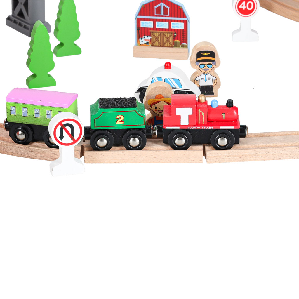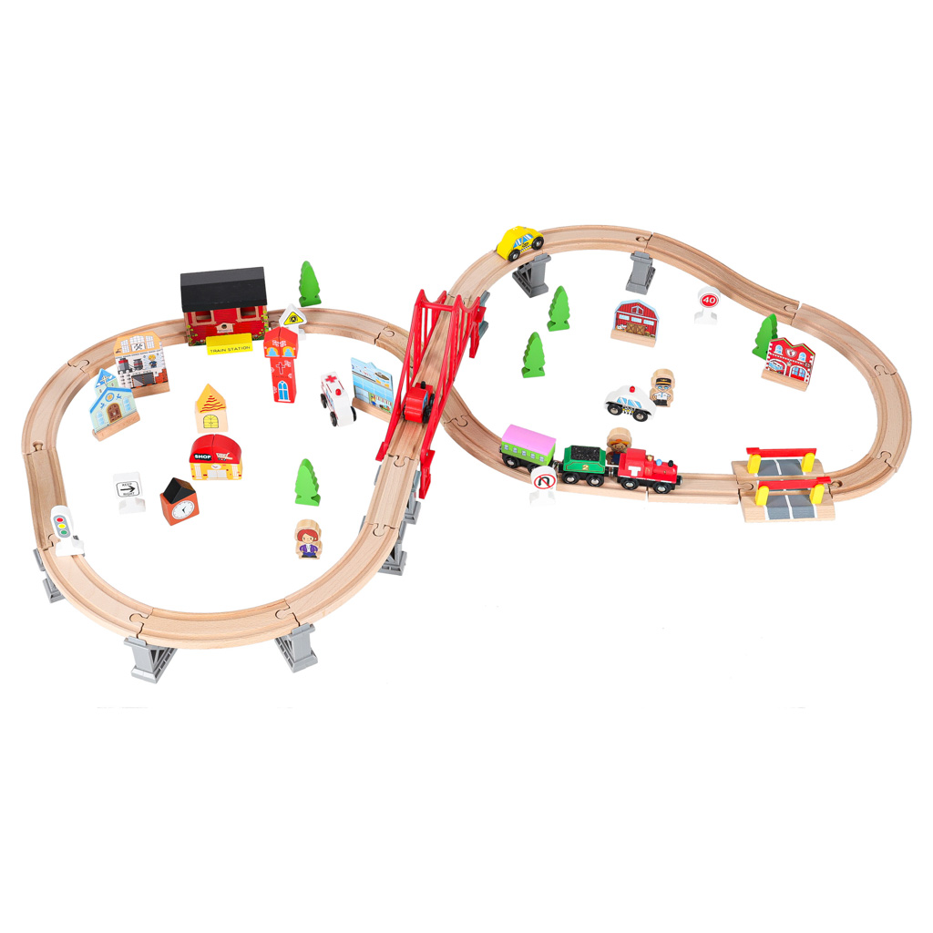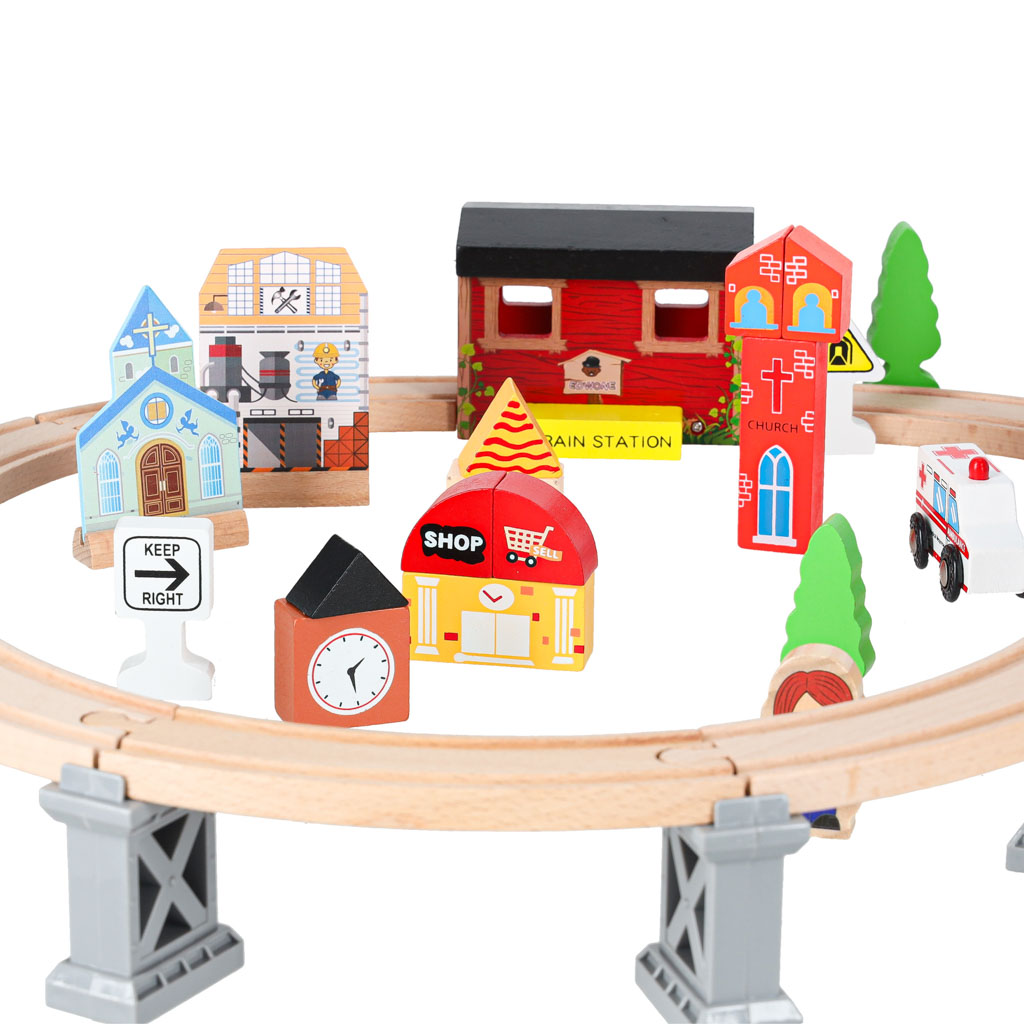 Drewniana kolejka to idealna zabawa dla najmłodszych. Zestaw składa się z 70 elementów, które pozwalają na stworzenie różnorodnych krajobrazów. Kolorowe klocki rozweselą każde dziecko i zapewnią godziny kreatywnej rozrywki.