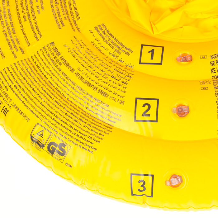 Żebrowe boki kółka oferują komfort, a wbudowana poduszka stabilizuje główkę dziecka. Specjalne siedzisko w formie pieluchy zapobiega wyślizgiwaniu się malucha z kółka, co zwiększa bezpieczeństwo podczas zabawy w wodzie.