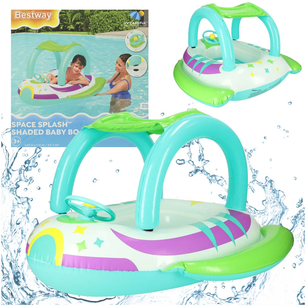 Idealne na lato, to dmuchane kółko do pływania z kierownicą zapewni Twojemu dziecku mnóstwo radości. Dzięki unikalnemu designowi w kształcie kosmicznego statku maluch poczuje się jak prawdziwy kapitan. To doskonały wybór na basen lub plażę, gdzie zabawa w wodzie staje się jeszcze bardziej ekscytująca.