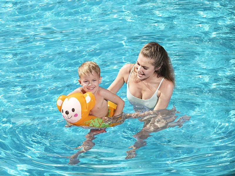 Wspaniałym dodatkiem podczas wakacyjnego wypoczynku niezależnie od tego czy będzie się on odbywał nad morzem czy w basenie jest dmuchane koło plażowe. Jesteśmy pewni, że w prosty sposób zachęci Twoje dziecko do wodnych aktywności na świeżym powietrzu oraz urozmaici jego zabawy. Kolorowe wzory zwierzęce sprawiają, że kolo wyróżnia się, a dziecko korzystające z niego staje się bardziej widoczne. Koło jest wytworzone z wytrzymałego materiału PCV odpornego na uszkodzenia i jest przeznaczone dla dzieci w wieku od 3 do 6 lat.