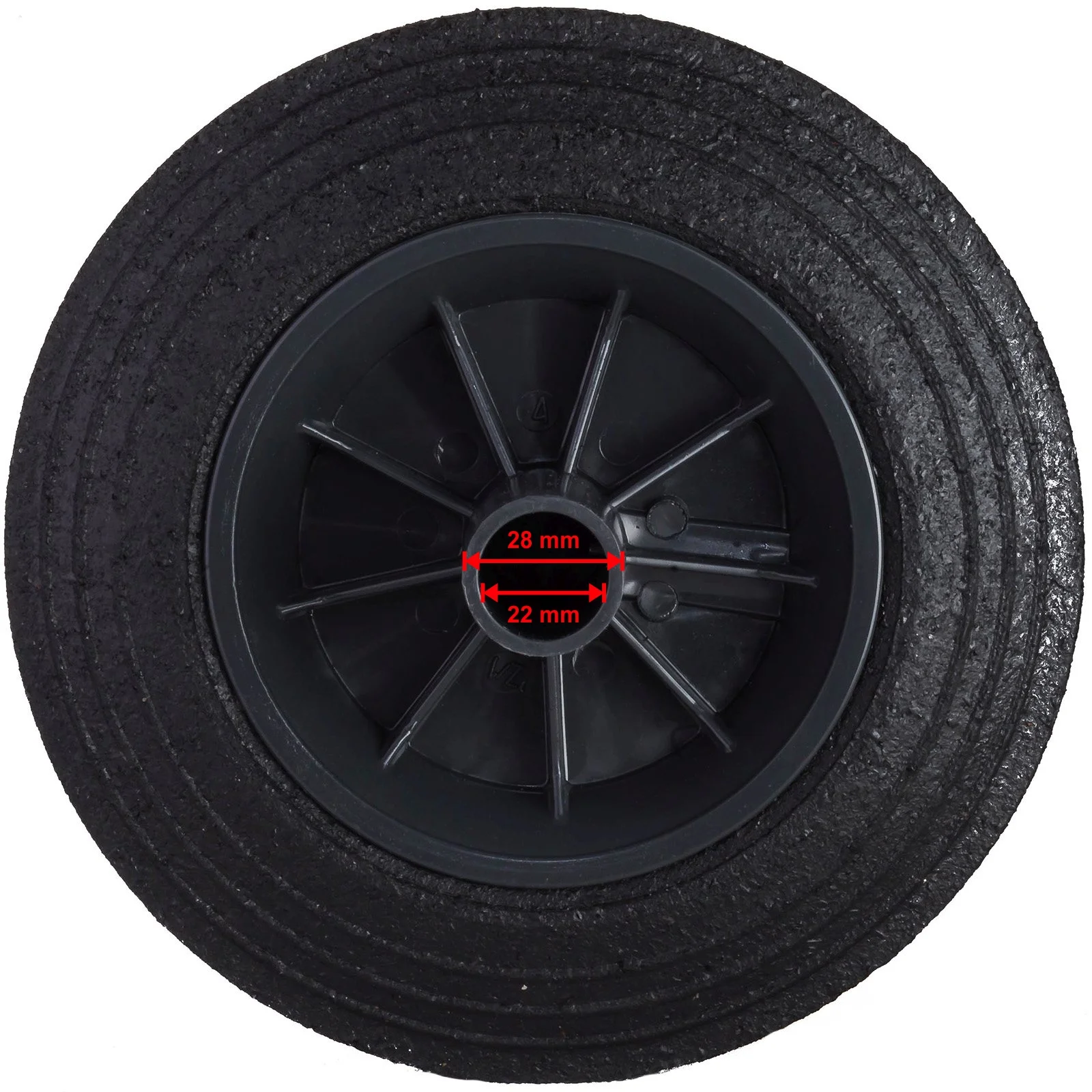 Opór toczenia tego koła jest mniejszy niż w przypadku ogumienia pneumatycznego, co ułatwia manewrowanie na gładkich nawierzchniach. Twardość kół wynosi 70-75°, co podnosi ich funkcjonalność.