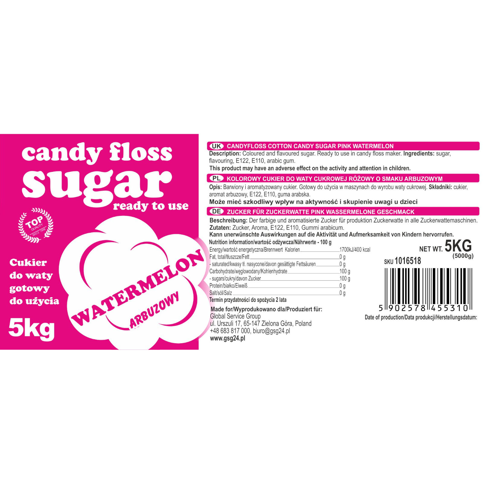 Dodaj wyjątkowy smak i kolor do swojej waty cukrowej dzięki naszemu różowemu cukrowi o smaku arbuzowym. Jest gotowy do użycia w maszynach do wyrobu waty, co sprawia, że przygotowanie słodkiej przekąski staje się szybkie i proste.