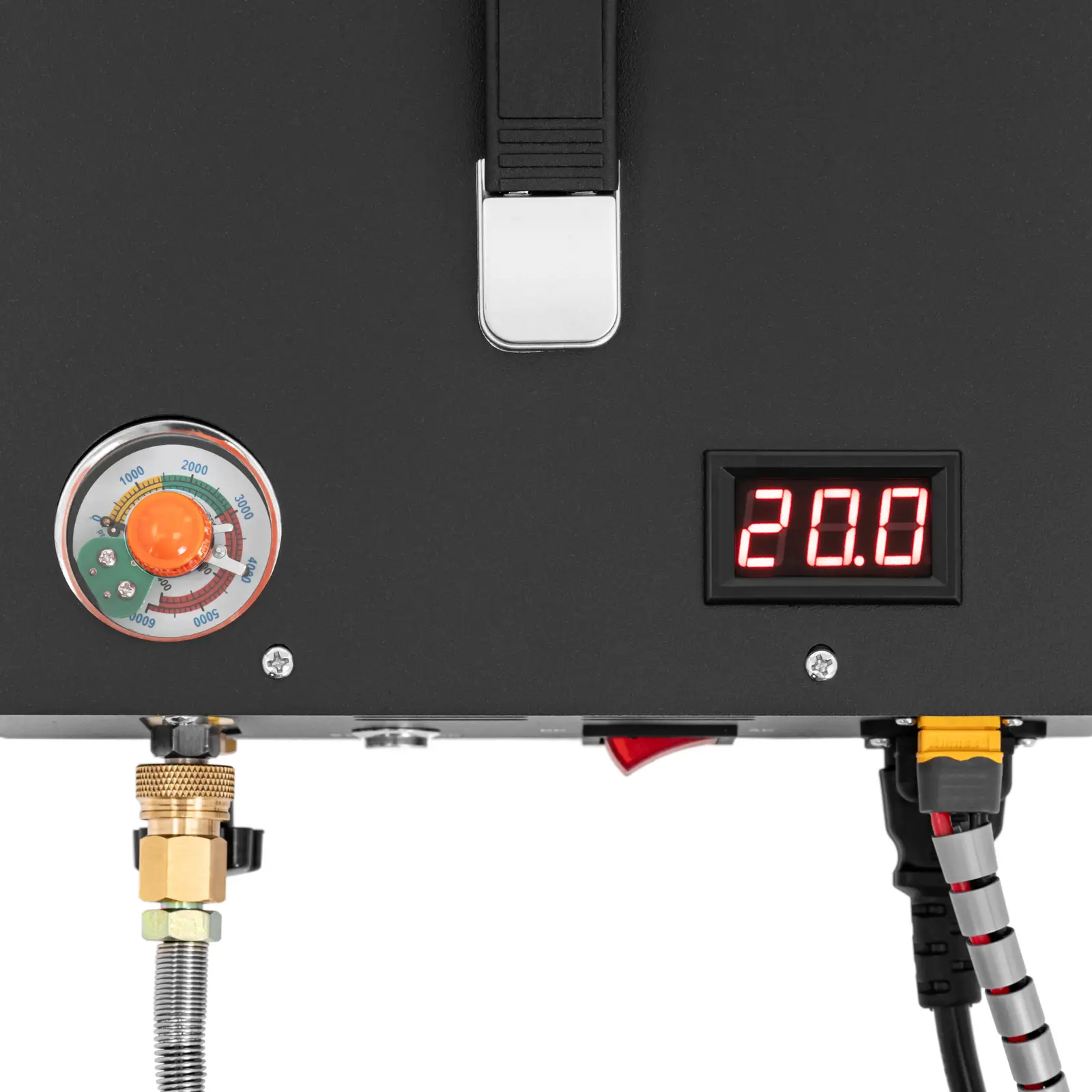 Kompresor osiąga maksymalne ciśnienie 300 bar i napełnia butlę o pojemności 0,5 l w zaledwie 16-17 minut. Urządzenie automatycznie wyłączy się po osiągnięciu ustawionego ciśnienia, co zapewnia wygodę użytkowania.