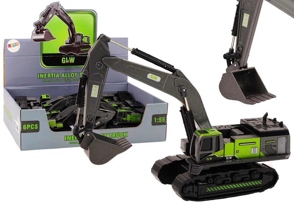 Koparka Gąsienicowa Metalowa Łyżka 1:55 Czarno-Zielona ⭐