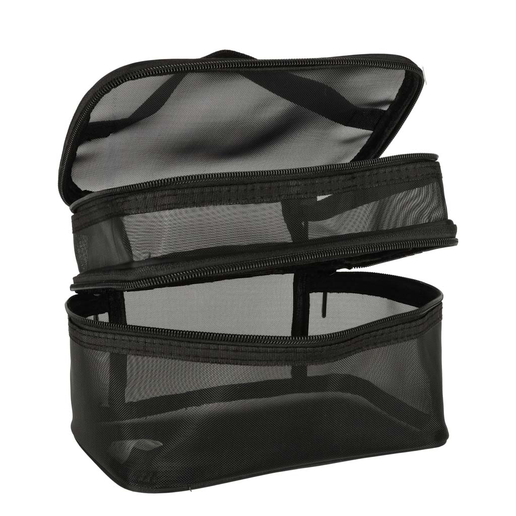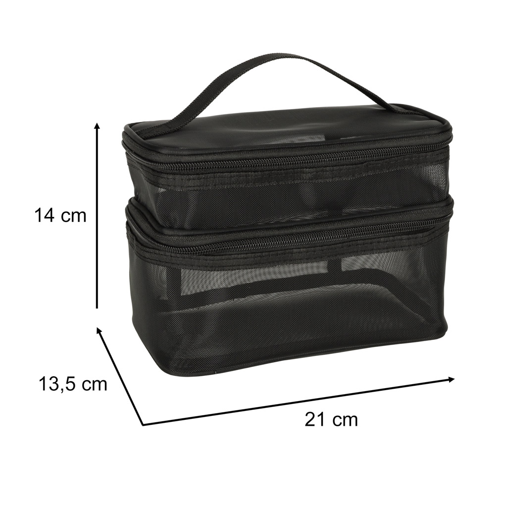 Praktyczna kosmetyczka podróżna to niezbędny element wyposażenia podczas każdej podróży. Dzięki dwupoziomowej konstrukcji, z łatwością zorganizujesz swoje kosmetyki i akcesoria. Kosmetyczka jest zapinana na dwustronny zamek błyskawiczny, co zapewnia wygodny dostęp do przechowywanych przedmiotów.