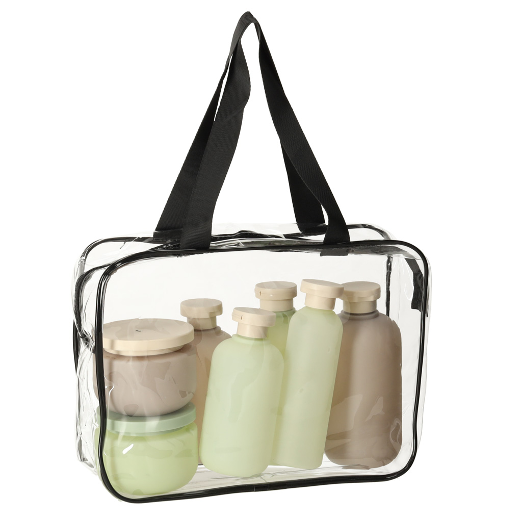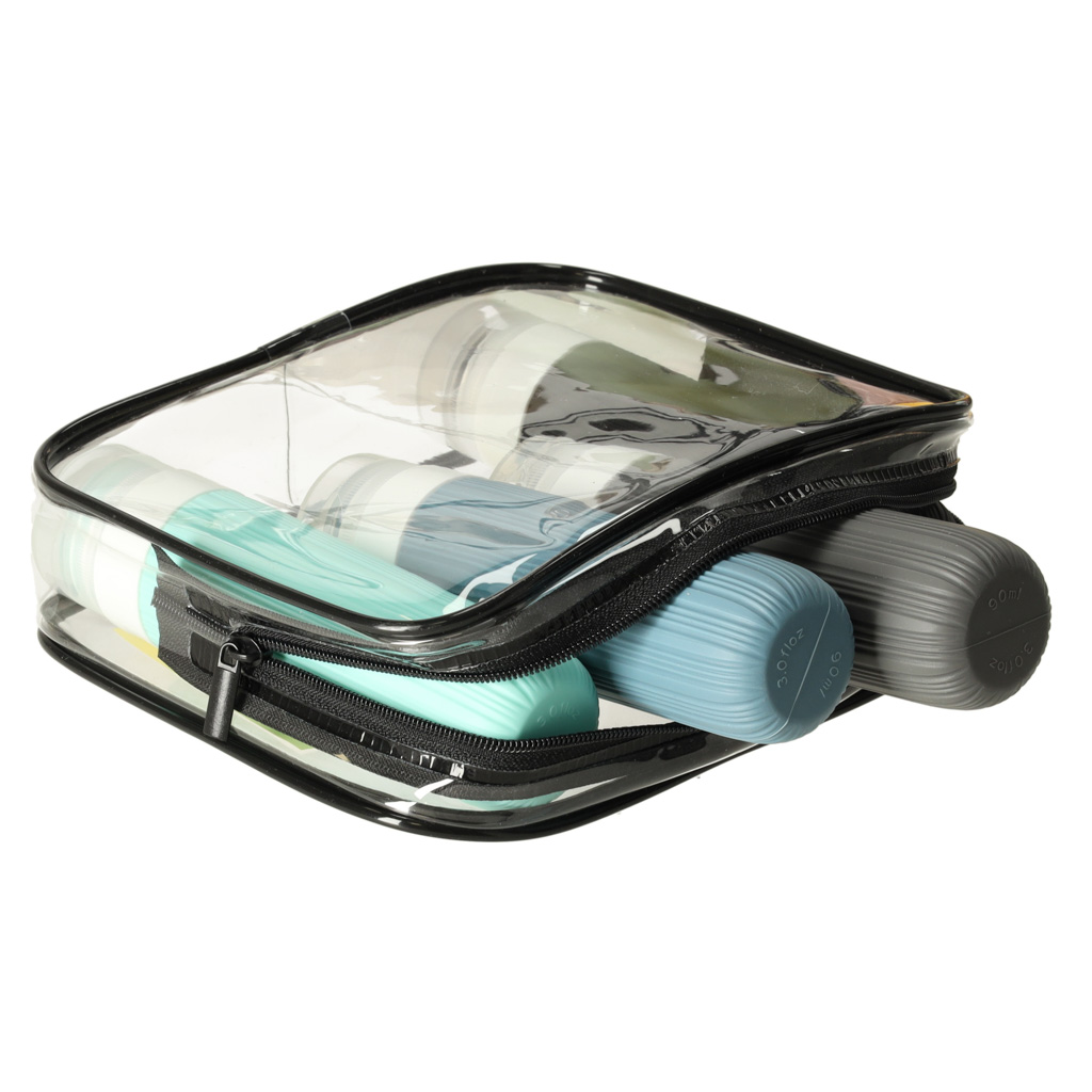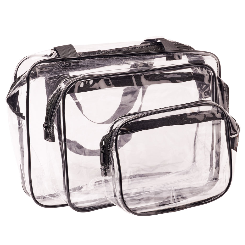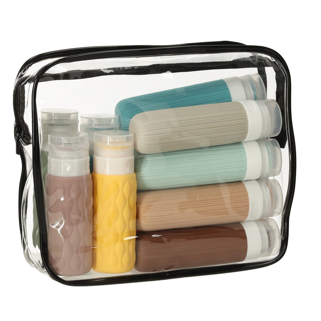 Wykonane z wodoodpornego materiału, kosmetyczki chronią Twoje przedmioty przed rozlaniem się kosmetyków. Przezroczysty materiał umożliwia szybkie odnalezienie potrzebnych rzeczy, co jest szczególnie przydatne podczas odprawy na lotnisku. Po powrocie z podróży, kosmetyczki można schować jedną w drugą, co ułatwia ich przechowywanie.