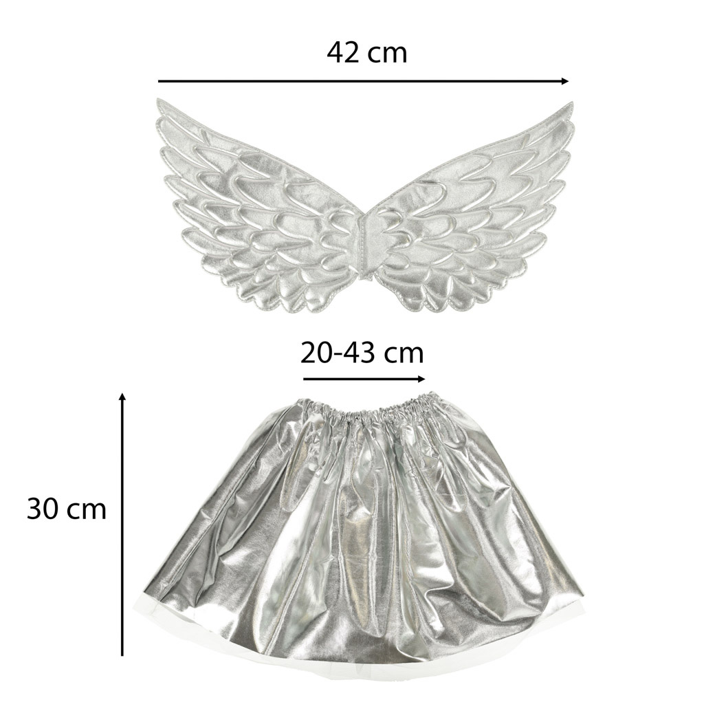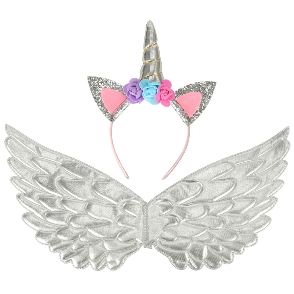 Srebrny kostium jednorożca to doskonały wybór na zabawę w domu oraz na bal przebierańców. Dzięki efektownemu wyglądowi, strój z pewnością wyróżni się w tłumie. Dodatkowo, uszy, róg, skrzydła i spódniczka tworzą kompletną całość, co zapewnia wygodę i radość z zabawy. Wytrzymałe i łatwe w czyszczeniu materiały gwarantują, że zarówno dziecko, jak i rodzice mogą cieszyć się zabawą bez obaw. Produkt jest zapakowany w foliowe opakowanie.
