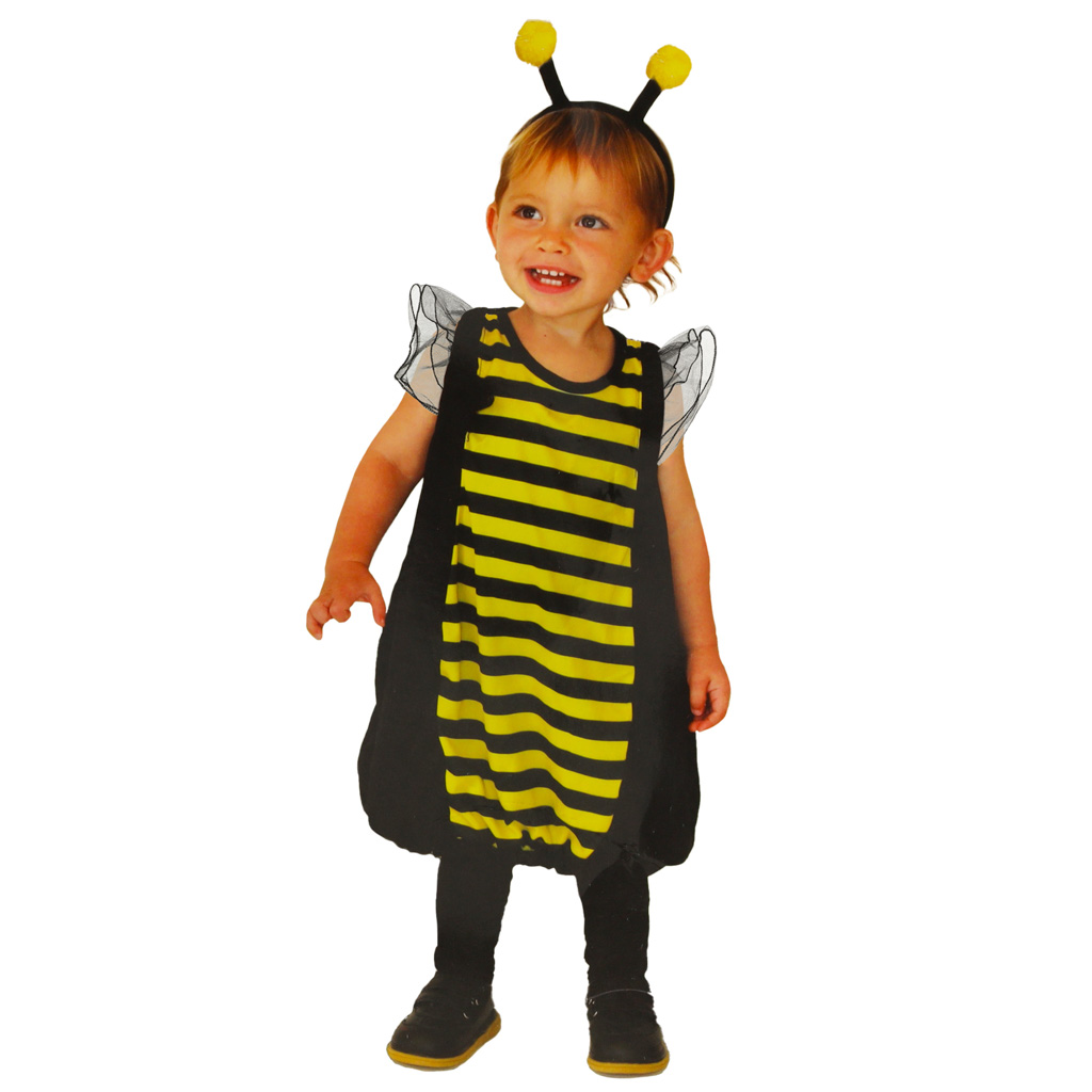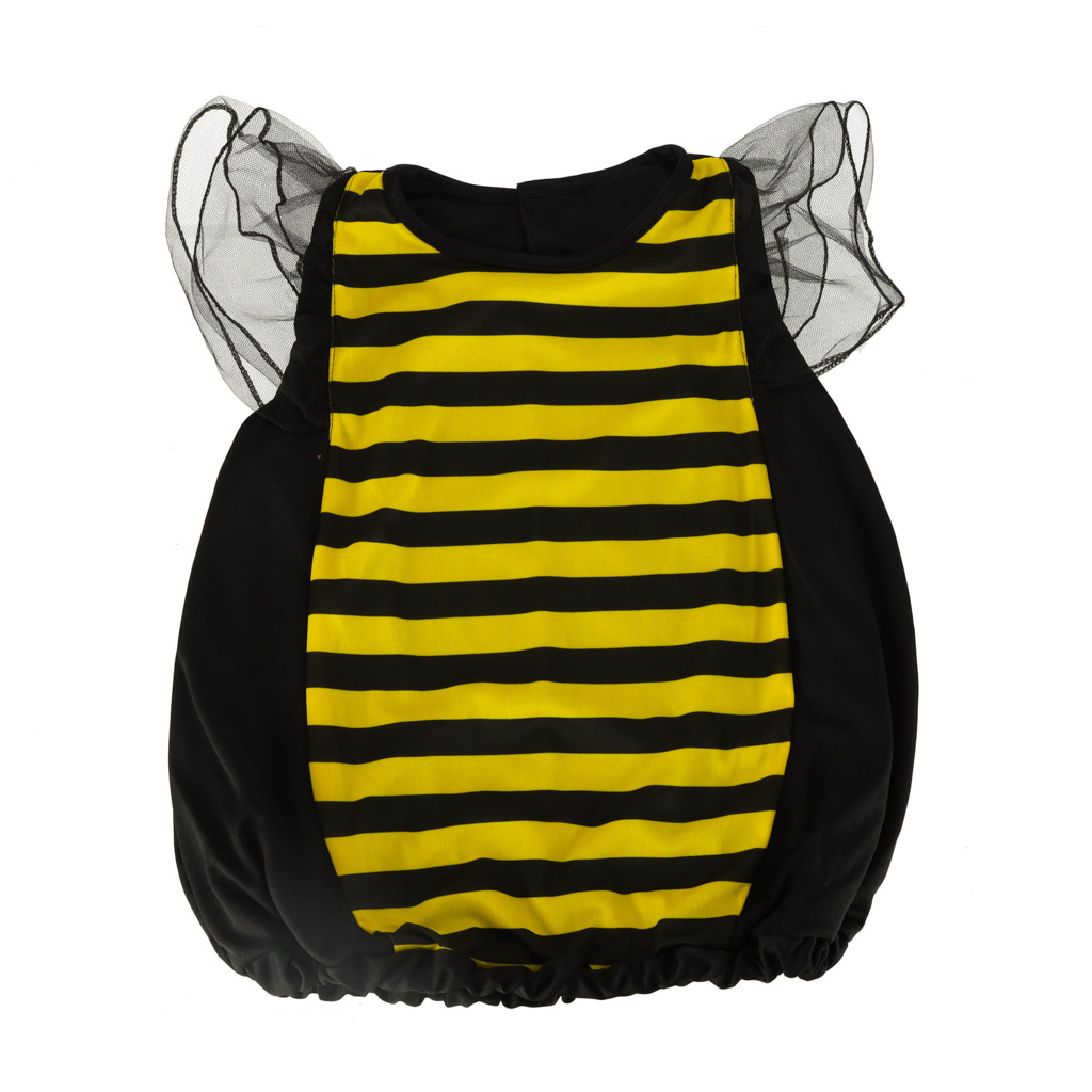 Oferujemy uroczy kostium pszczółki, idealny dla dzieci, który składa się z dwóch elementów: kombinezonu w paski oraz opaski z czułkami. Strój ten jest doskonały na różne imprezy tematyczne, bale przebierańców oraz do codziennej zabawy.