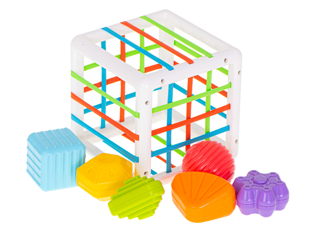 Sorter wykonany jest z wytrzymałych, bezpiecznych materiałów, co sprawia, że jest idealny dla dzieci powyżej 12. miesiąca życia. Zestaw zawiera kostkę oraz 6 klocków w różnych kształtach, co daje wiele możliwości zabawy.