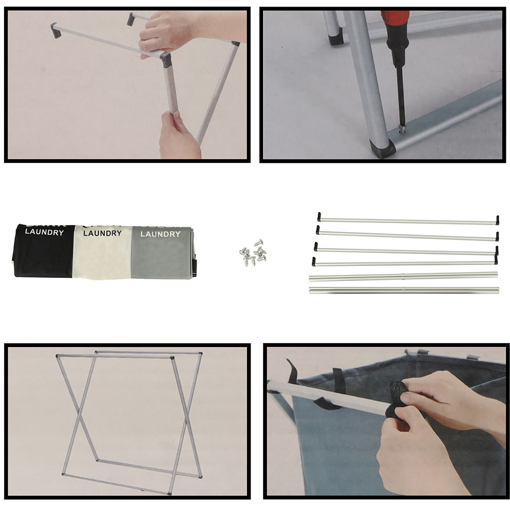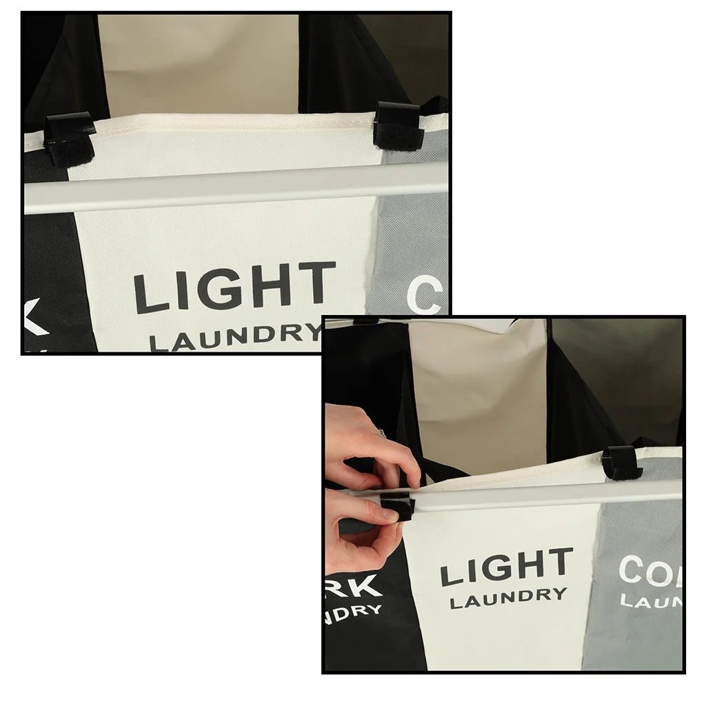 Kosz jest składany, co ułatwia jego przechowywanie, gdy nie jest potrzebny. Wytrzymały metalowy stelaż oraz trwałe pojemniki z materiału zapewniają długotrwałe użytkowanie. Połączenie elementów za pomocą mocnych rzepów gwarantuje stabilność i łatwość w montażu.