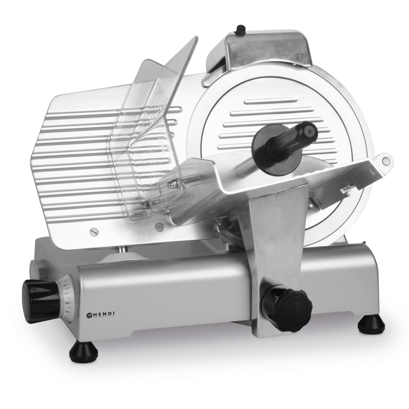 Krajalnica Hendi Kitchen Line 300 to doskonałe rozwiązanie do precyzyjnego krojenia wędlin i serów. Dzięki silnikowi o mocy 250 W oraz nożowi o średnicy 300 mm, umożliwia szybkie i efektywne krojenie.