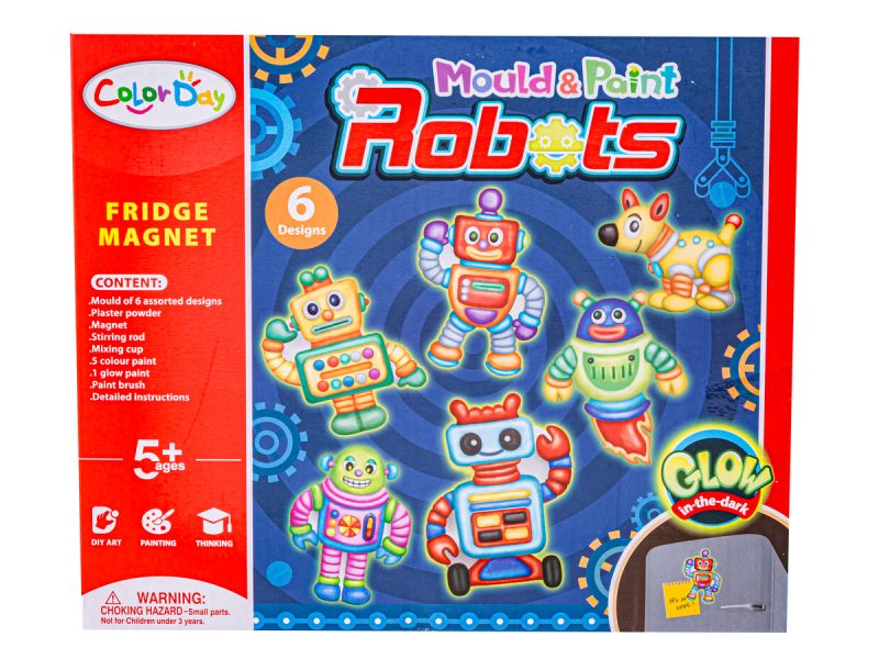 Zabawa gipsem to wspaniała zabawa dla każdego dziecka. Nasz zestaw pozwala na odlanie aż 6 różnych wzorów. Następnie malujemy je według własnego pomysłu, dzięki czemu każdy z nich jest niepowtarzalny. Jeden z kolorów sprawia, że magnesy mogą świecić w nocy.