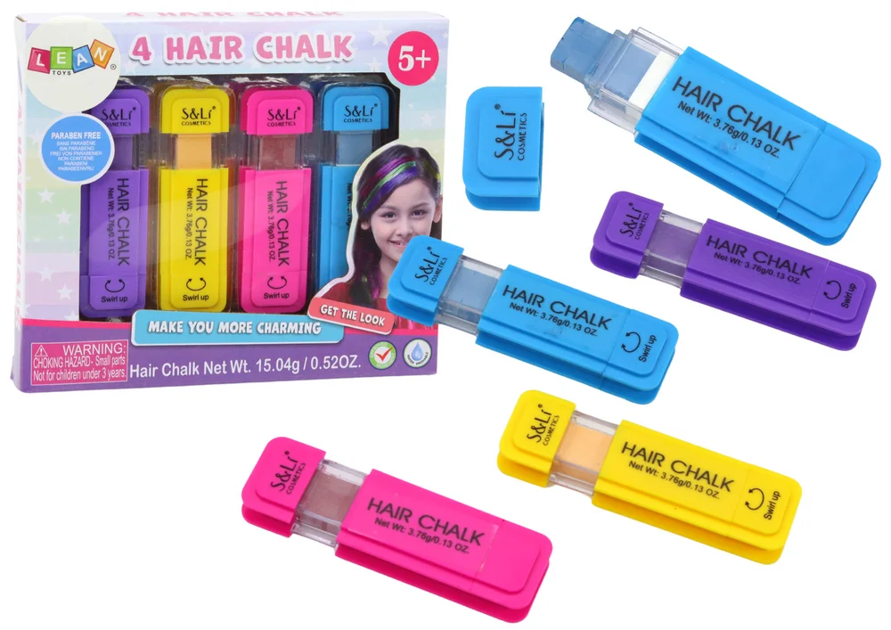 Zestaw zawiera aż cztery kredy farbujące, co umożliwia jeszcze większą różnorodność w tworzeniu fryzur. Szybkość i łatwość zmiany koloru włosów sprawiają, że każde dziecko może w kilka chwil zmienić swój wygląd i poczuć się jak prawdziwy stylista. To nie tylko zabawa, ale także sposób na rozwijanie wyobraźni i kreatywności u dzieci.