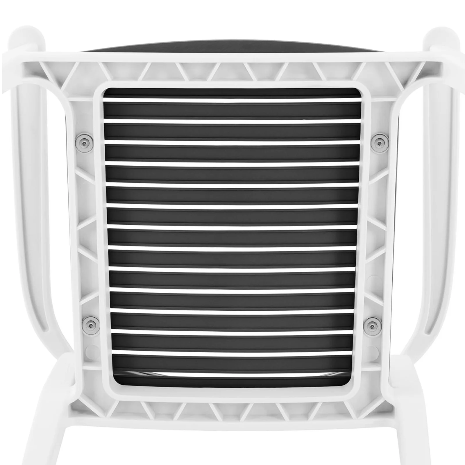 Wykonane z trwałego tworzywa sztucznego, te krzesła zapewniają wygodę użytkowania. Ażurowe oparcie w szarym kolorze sprzyja cyrkulacji powietrza, co jest istotne w gorące dni. Każde krzesło ma nośność do 150 kg i nie wydaje dźwięków nawet przy pełnym obciążeniu. Materiał polipropylenowy jest odporny na uszkodzenia i łatwy do utrzymania w czystości.