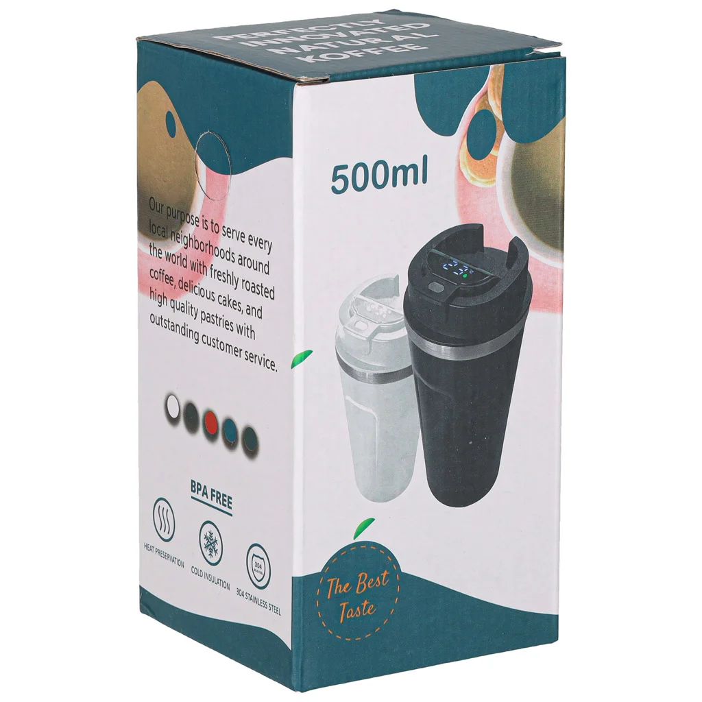 KUBEK TERMICZNY Z USTNIKIEM TERMOS LED 500 ML BIAŁY