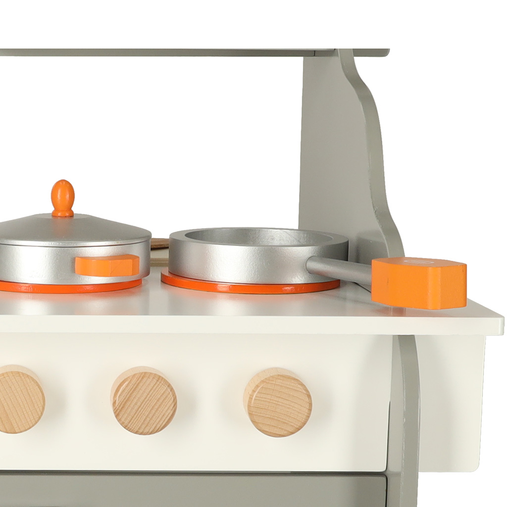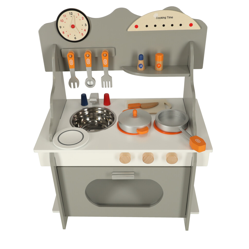 W kuchni znajduje się piekarnik, zlew z kranem oraz kuchenka, co sprawia, że zabawa staje się jeszcze bardziej realistyczna. Dzieci poznają zasady bezpieczeństwa podczas gotowania, ucząc się m.in. o wyłączaniu palnika.