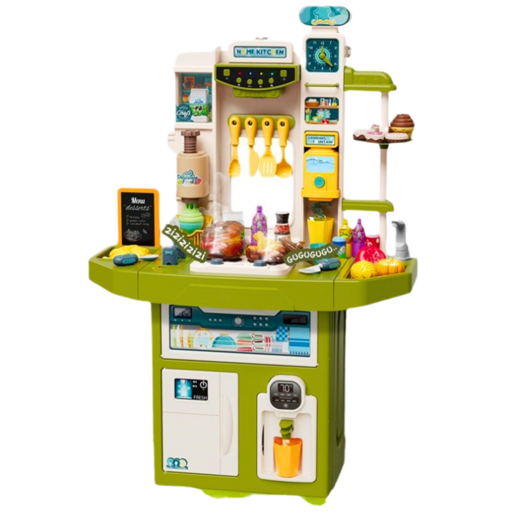 Duża kuchnia dziecięca SPRAY HOME KITCHEN to doskonały wybór dla małych pasjonatów gotowania. Wyposażona w aż 71 elementów, zapewnia dzieciom możliwość swobodnej, kreatywnej i realistycznej zabawy w gotowanie, pieczenie, podawanie posiłków oraz mycie naczyń. Bogaty zestaw akcesoriów obejmuje m.in. garnki, sztućce, produkty spożywcze, warzywa, owoce, talerze, napoje i przyprawy, dzięki czemu dziecko może poczuć się jak w prawdziwej kuchni.