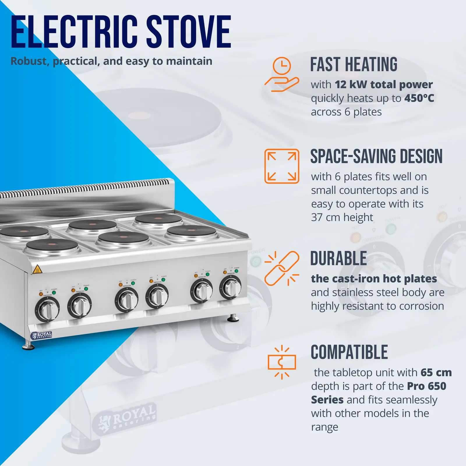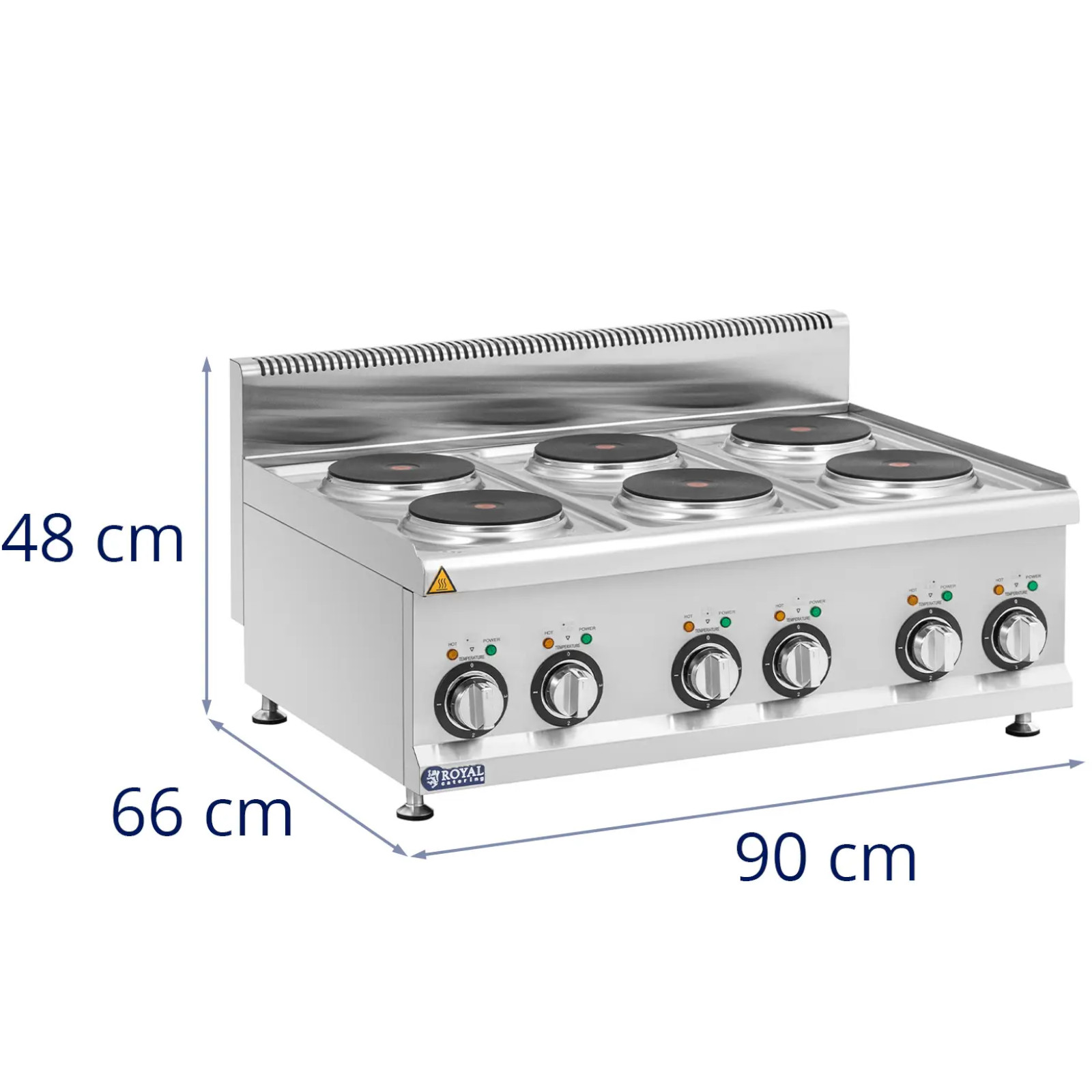Kuchnia elektryczna nastawna 6 pól grzewczych śr. 19 cm 12 kW 400 V to idealne rozwiązanie dla profesjonalnych kuchni w hotelach i restauracjach. Dzięki mocy 12 kW, urządzenie szybko osiąga temperaturę do 450°C, co znacząco przyspiesza proces gotowania. Z sześcioma palnikami o średnicy 19 cm, każdy z nich o mocy 2000 W, kuchnia ta doskonale radzi sobie z różnorodnymi potrawami, a jej kompaktowe wymiary sprawiają, że zmieści się nawet w małych pomieszczeniach.