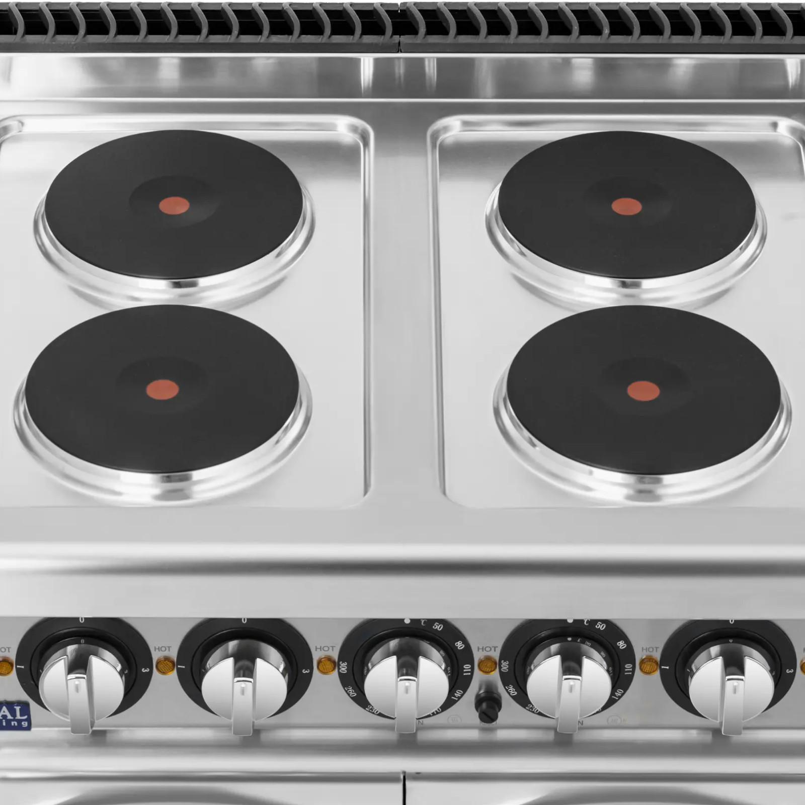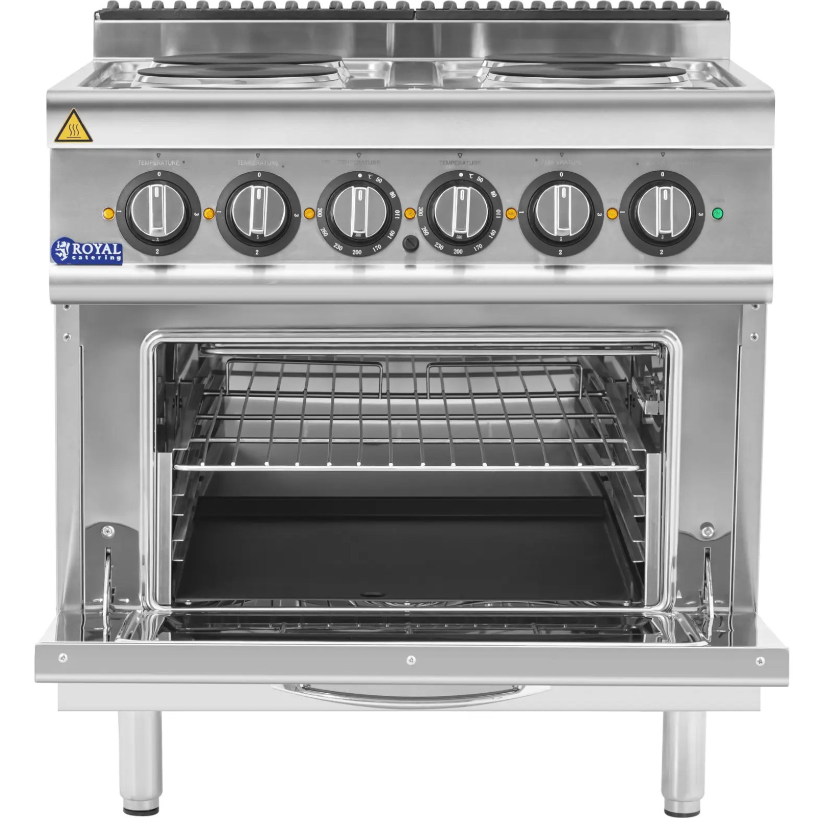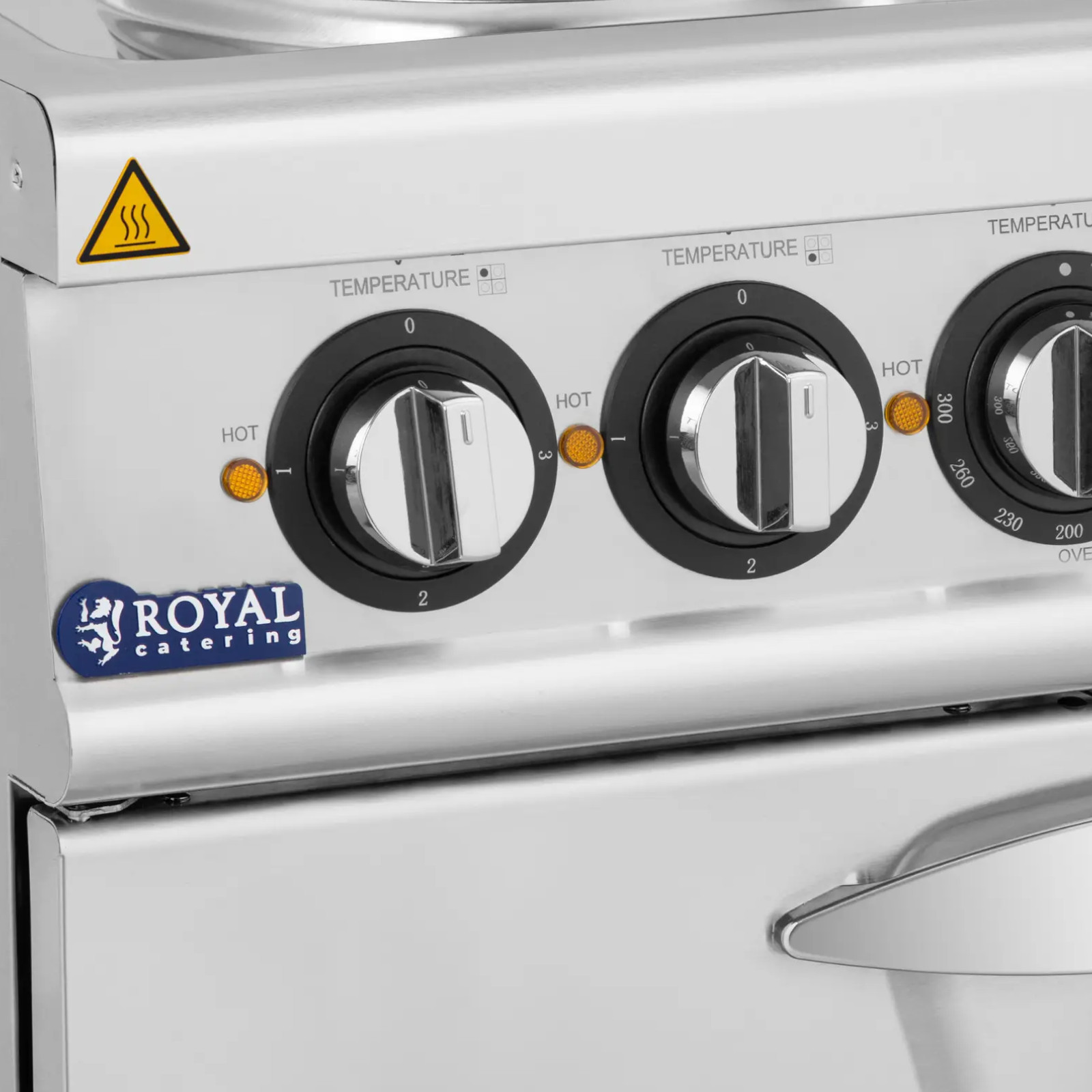 Kuchnia elektryczna marki Royal Catering to doskonały wybór dla osób, które cenią sobie funkcjonalność i nowoczesny design. Wykonana z wytrzymałej stali nierdzewnej, idealnie wpasuje się w wystrój każdej kuchni.