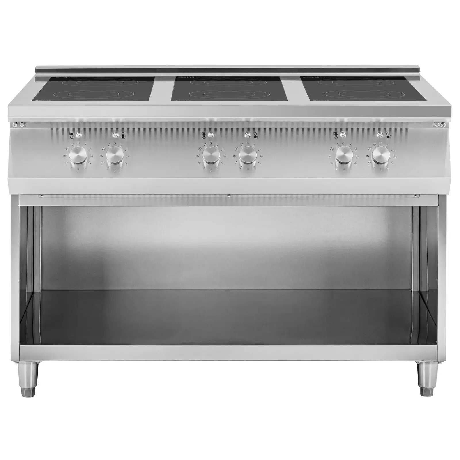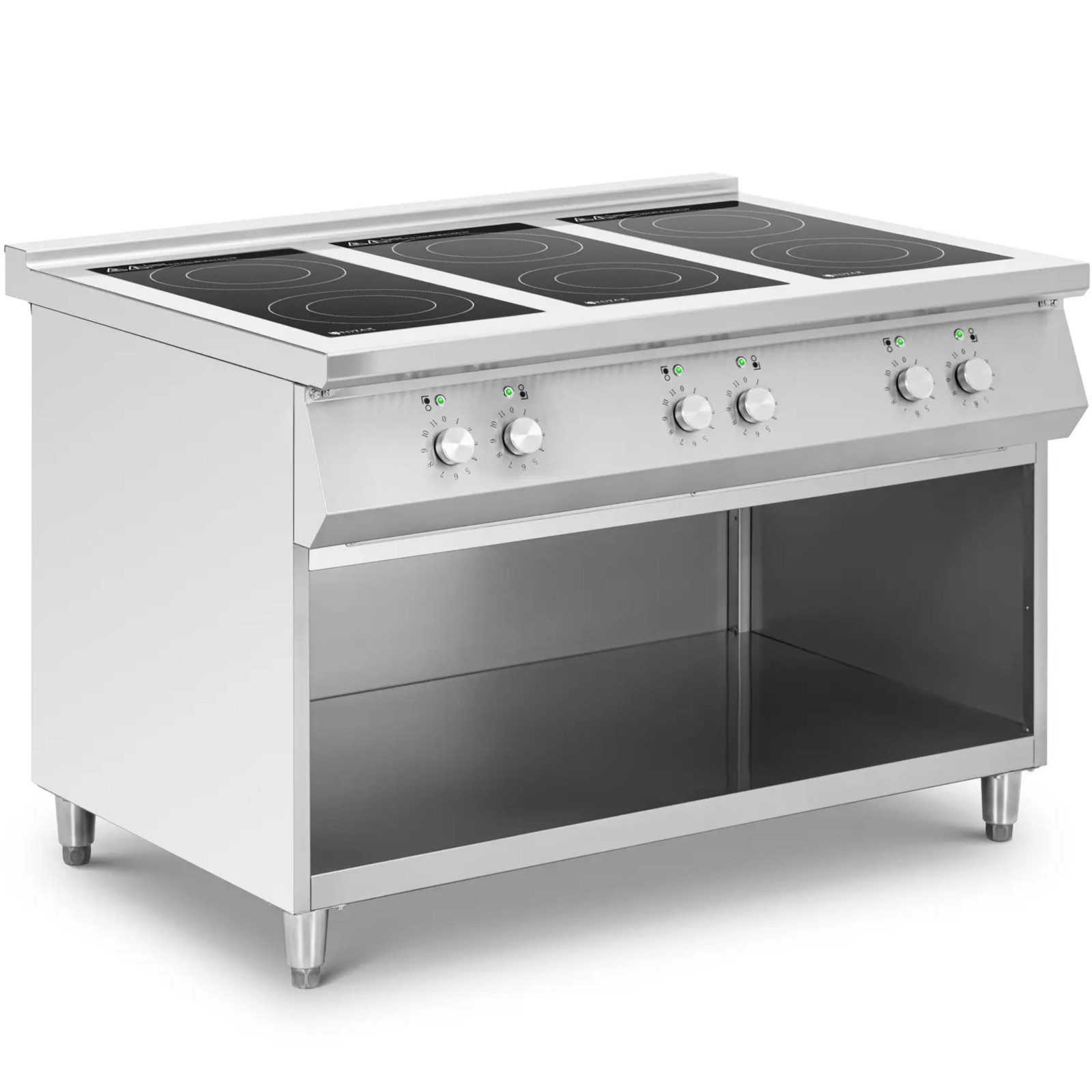 Odkryj nową jakość gotowania z kuchnią indukcyjną marki Royal Catering. To urządzenie umożliwia energooszczędne gotowanie na sześciu palnikach. Dzięki innowacyjnej technologii, jedynie naczynia się nagrzewają, a sama płyta pozostaje chłodna, co zwiększa bezpieczeństwo użytkowania.
