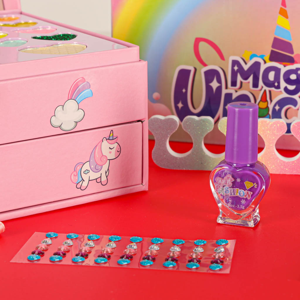 Odkryj magiczny świat makijażu i paznokci z naszym zestawem dla dzieci! Idealny dla małych artystek, które pragną wyrazić swoją kreatywność i bawić się w stylizację. Zestaw zawiera wszystko, co potrzebne do stworzenia pięknych makijaży i efektownych paznokci.