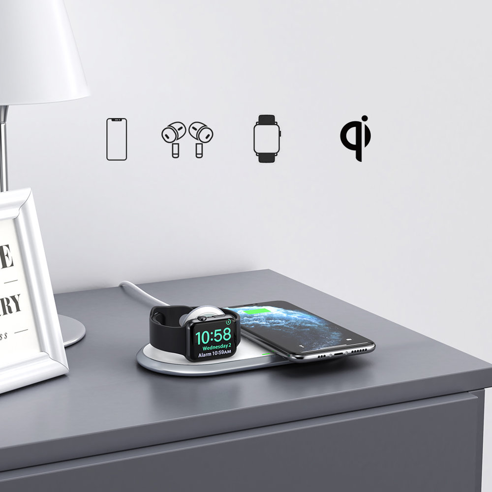 Ładowarka bezprzewodowa Qi 2w1 do smartfona i Apple Watch ze stojakiem USB Typ C w kolorze białym to doskonałe rozwiązanie dla osób ceniących sobie funkcjonalność. Dzięki niej możesz ładować jednocześnie smartfon oraz zegarek Apple Watch, eliminując konieczność używania wielu kabli.