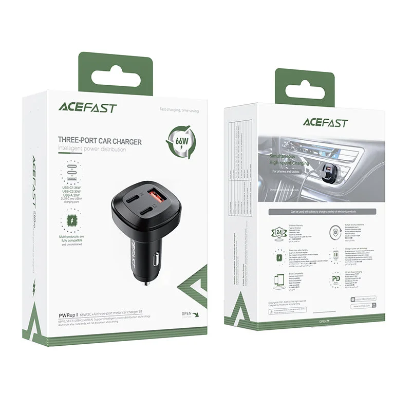 Ładowarka samochodowa marki Acefast to idealne rozwiązanie dla osób podróżujących. Dzięki możliwości ładowania trzech urządzeń jednocześnie, możesz mieć pewność, że wszystkie Twoje urządzenia mobilne będą zawsze naładowane. Wysokiej jakości materiały zapewniają bezpieczeństwo użytkowania, a wsparcie dla różnych standardów szybkiego ładowania sprawia, że jest to praktyczny wybór.