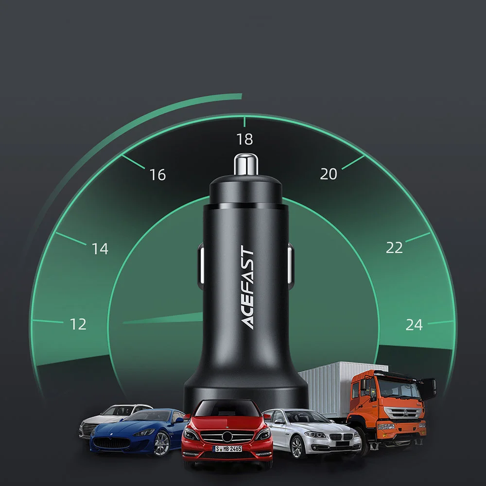 Wykonana z ognioodpornego materiału PC, ładowarka samochodowa zapewnia dodatkowe bezpieczeństwo, co czyni ją idealnym wyborem do zasilania tabletów, telefonów i innych urządzeń elektronicznych w trakcie podróży.