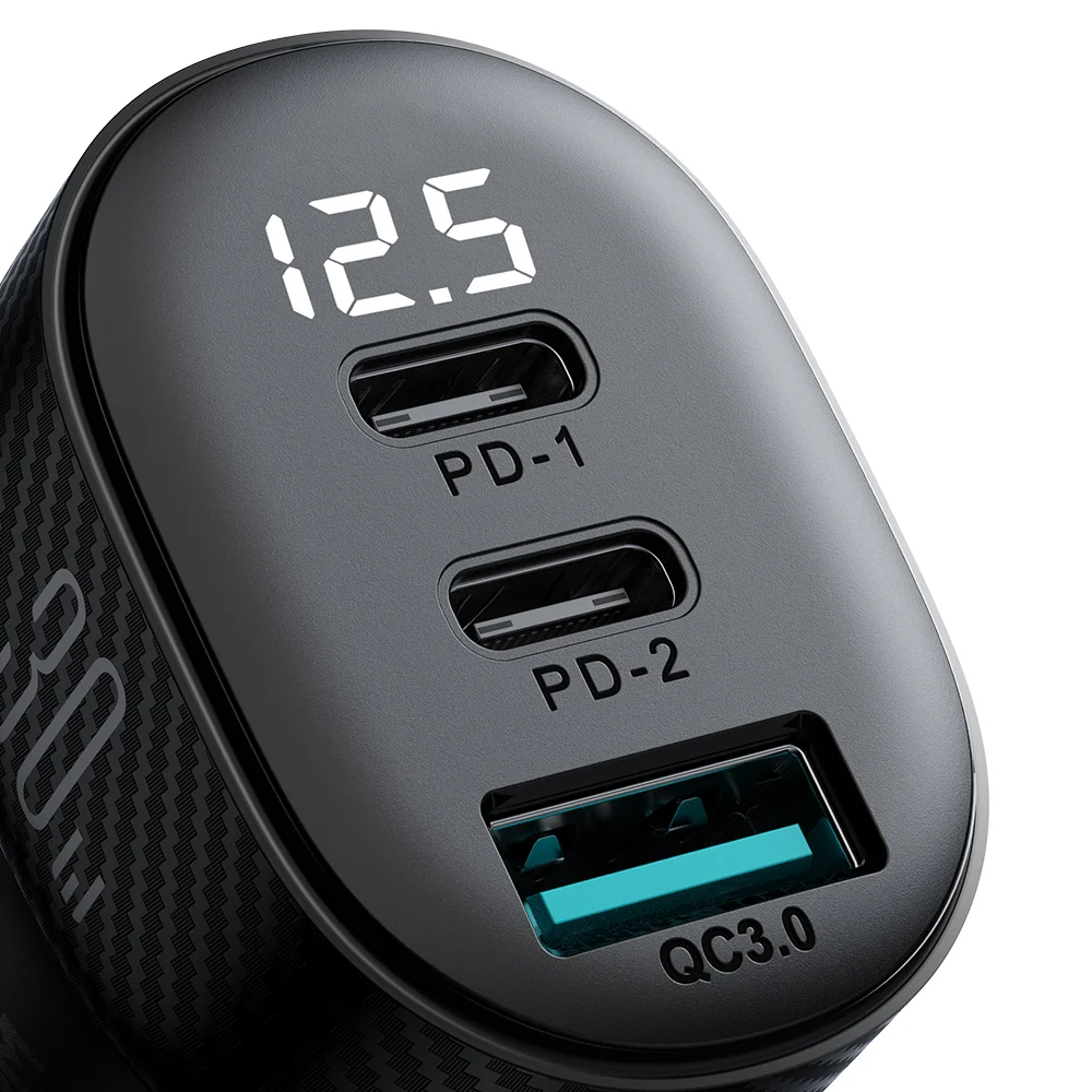 Oferujemy ładowarkę samochodową, która zapewnia wygodę i wydajność w podróży. Dzięki mocy 30W i trzem portom (dwa USB-C oraz jeden USB-A), możesz ładować jednocześnie trzy urządzenia. To doskonałe rozwiązanie dla osób, które korzystają z wielu gadżetów w trasie.