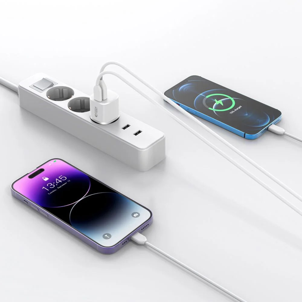 Wyposażona w nowoczesne technologie Quick Charge oraz Power Delivery, ładowarka C20W mini zapewnia błyskawiczne zwiększenie mocy, co znacząco skraca czas ładowania. Dzięki portom USB-C (PD 20W) oraz USB-A (QC 3.0), masz możliwość równoczesnego ładowania dwóch urządzeń.