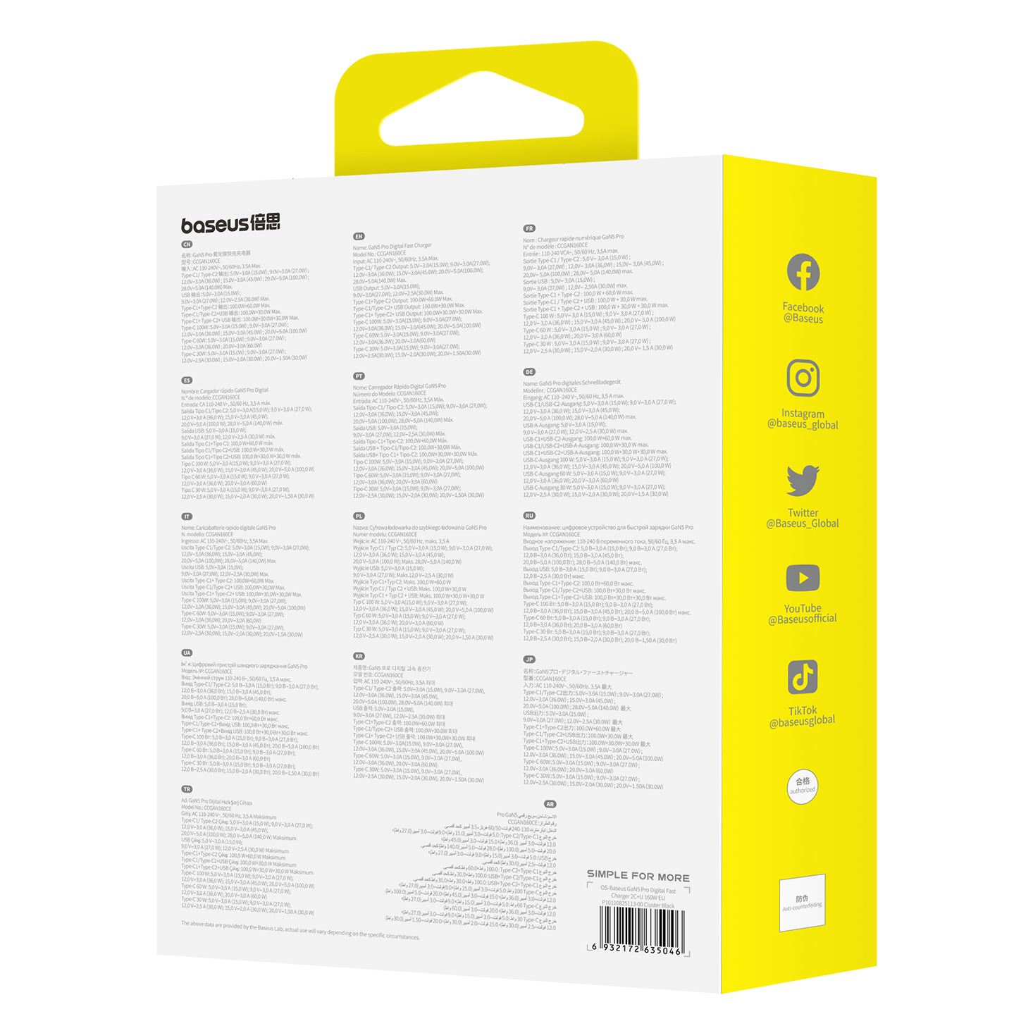 Ładowarka Baseus GaN5 Pro to nowoczesne urządzenie, które łączy w sobie wysoką moc i kompaktowe wymiary. Dzięki technologii GaN5, oferuje moc 160W, co umożliwia szybkie ładowanie wielu urządzeń jednocześnie. Dwa porty USB-C oraz jeden USB-A zapewniają elastyczność w podłączeniu różnych sprzętów.