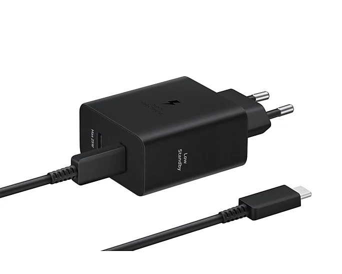 Ładowarka Samsung USB-C 50W to innowacyjne urządzenie, które umożliwia szybkie i bezpieczne ładowanie. Dzięki technologii Super Fast Charging 2.0 oraz Power Delivery 3.0, dostosowuje napięcie i natężenie do potrzeb podłączonych urządzeń, co zapewnia efektywne ładowanie.