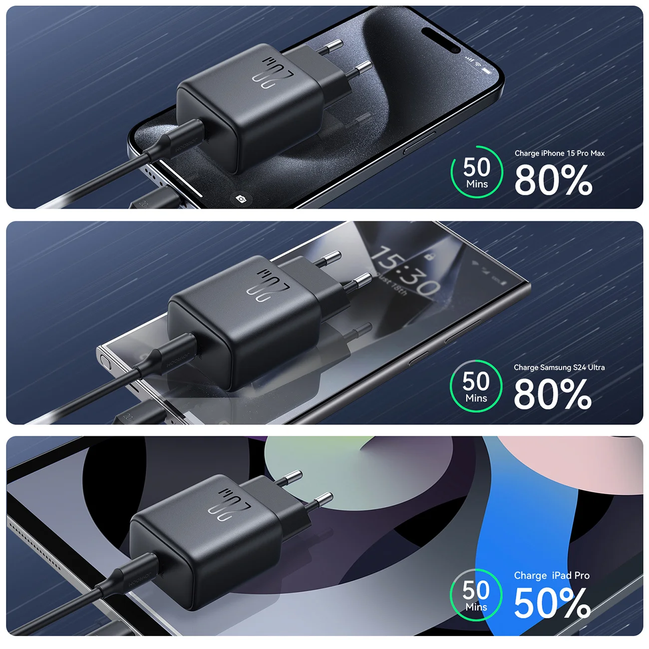 Joyroom JR-TCF20 posiada port USB-C, co sprawia, że jest kompatybilna z wieloma telefonami i tabletami. Nie musisz już martwić się o posiadanie różnych ładowarek dla różnych urządzeń.