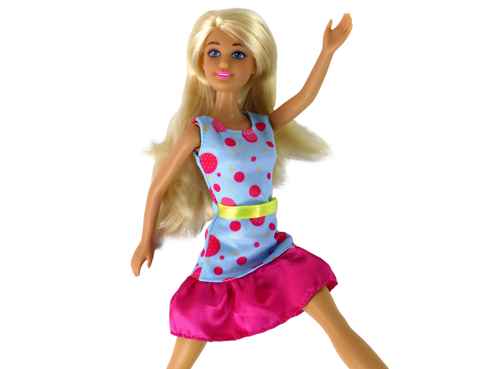 Lalka Anlily ma długie blond włosy, które można czesać i układać w różne fryzury. Jest ubrana w uroczą sukienkę w kolorach różowym i niebieskim, co nadaje jej uroku.