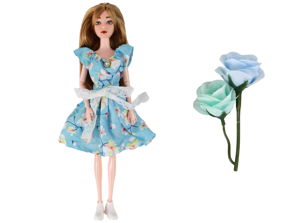 Lalka Dla Dzieci Emily Wiosenna Długie Włosy Niebieska Sukienka Kwiat