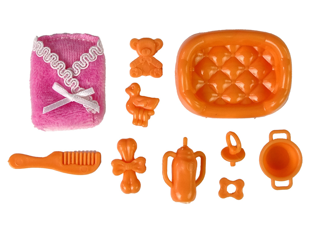 A to nie koniec atrakcji! Zestaw jest bogaty w liczne akcesoria, takie jak grzebień, garnek, smoczek, kaczka do kąpieli, butelka, zabawka dla dziecka, kość, pluszowy miś oraz chodzik (10 cm x 8 cm x 6 cm) - doskonały do opieki nad małym "dziecięcym" bohaterem. Dodatkowo, lalka ma zestaw do spania dla dziecka, tworząc kompleksowy zestaw dla pełnej i angażującej zabawy.